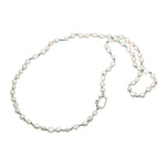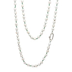 Long Knotted Pearl and Chrysoprase Necklacepearls, chrysoprase, hinged sugar bail, green silk