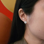 Medium Topography Post Earrings with (6) White Diamonds in Brushed Silver