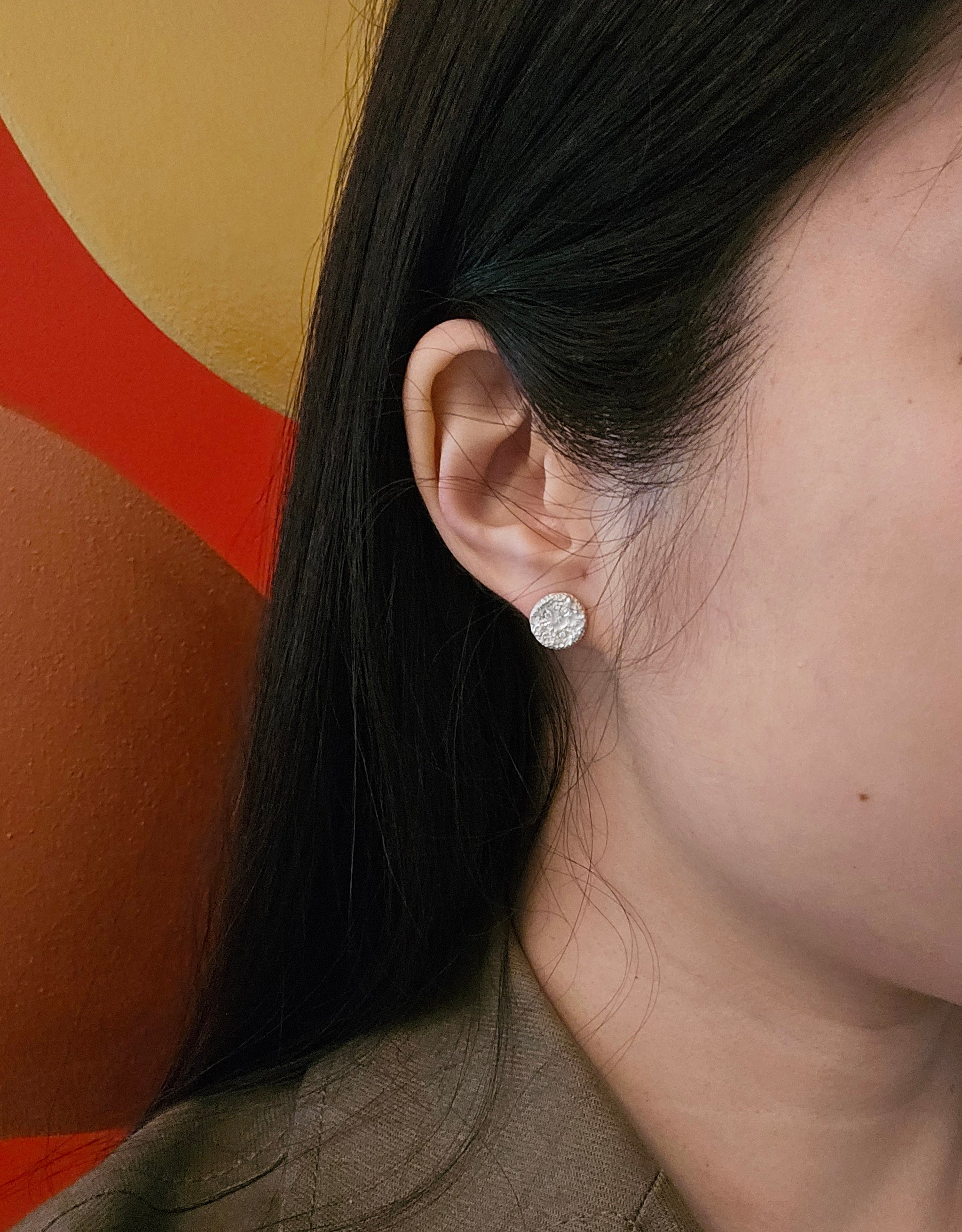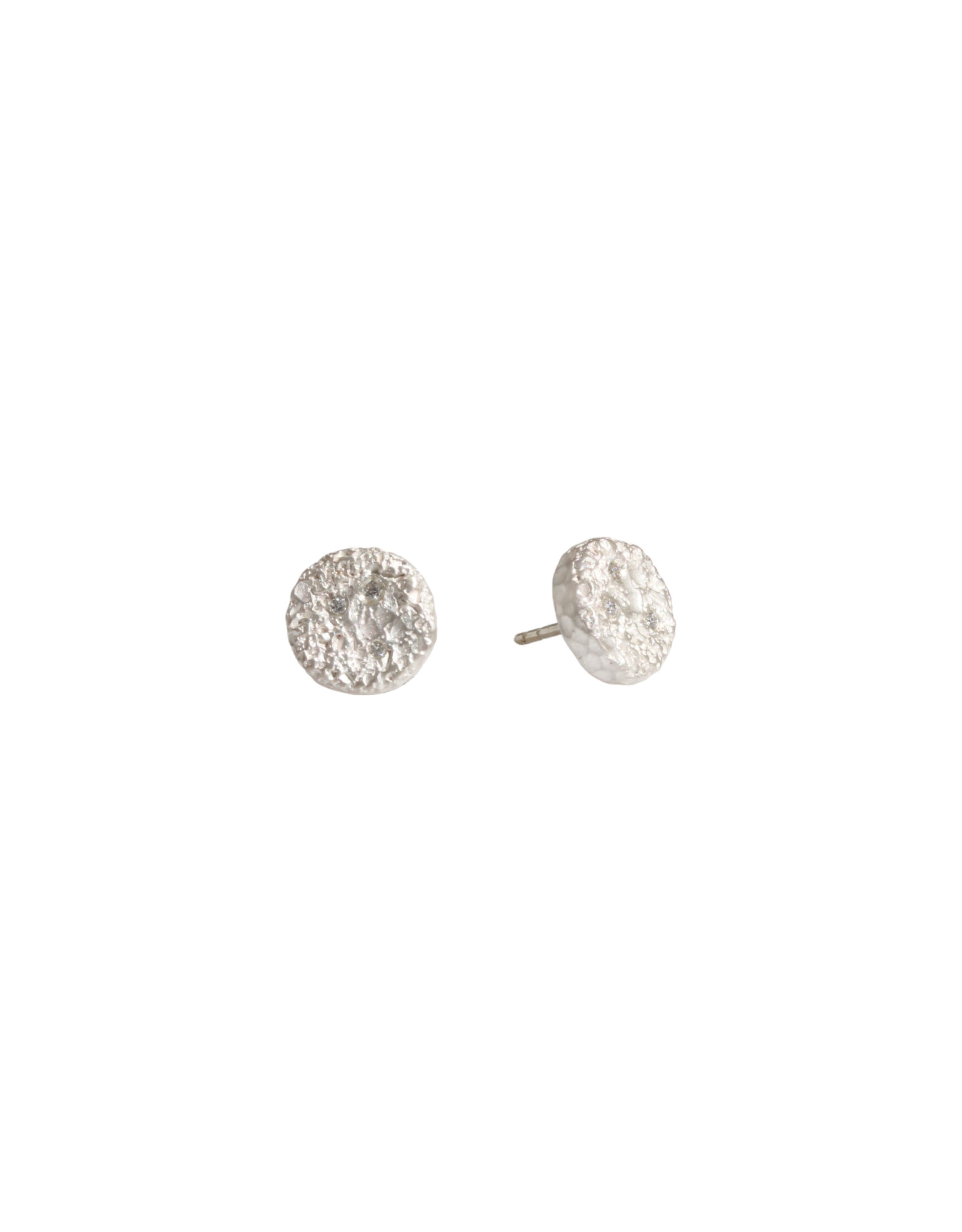 Medium Topography Post Earrings with (6) Diamonds in Brushed Silver