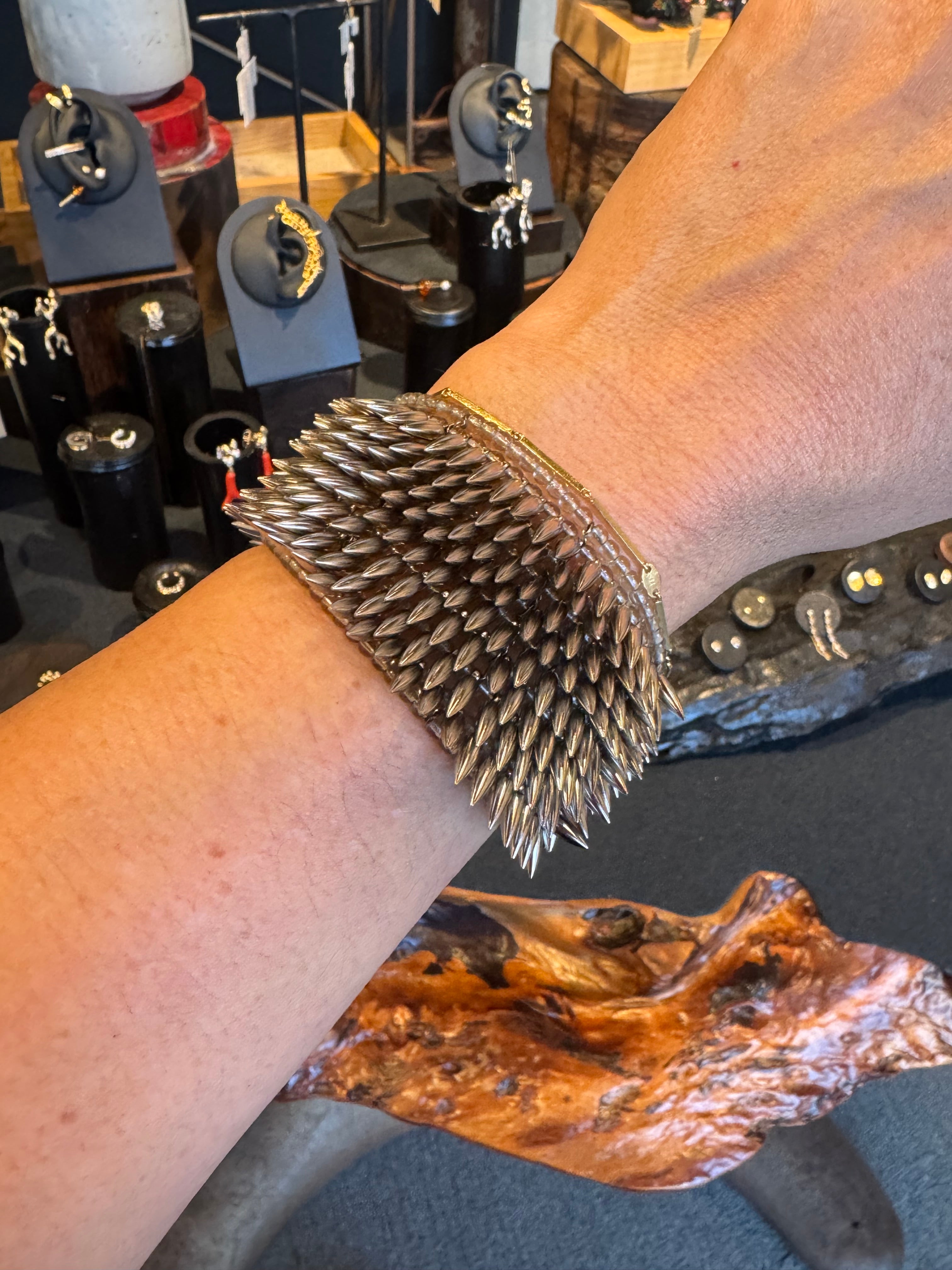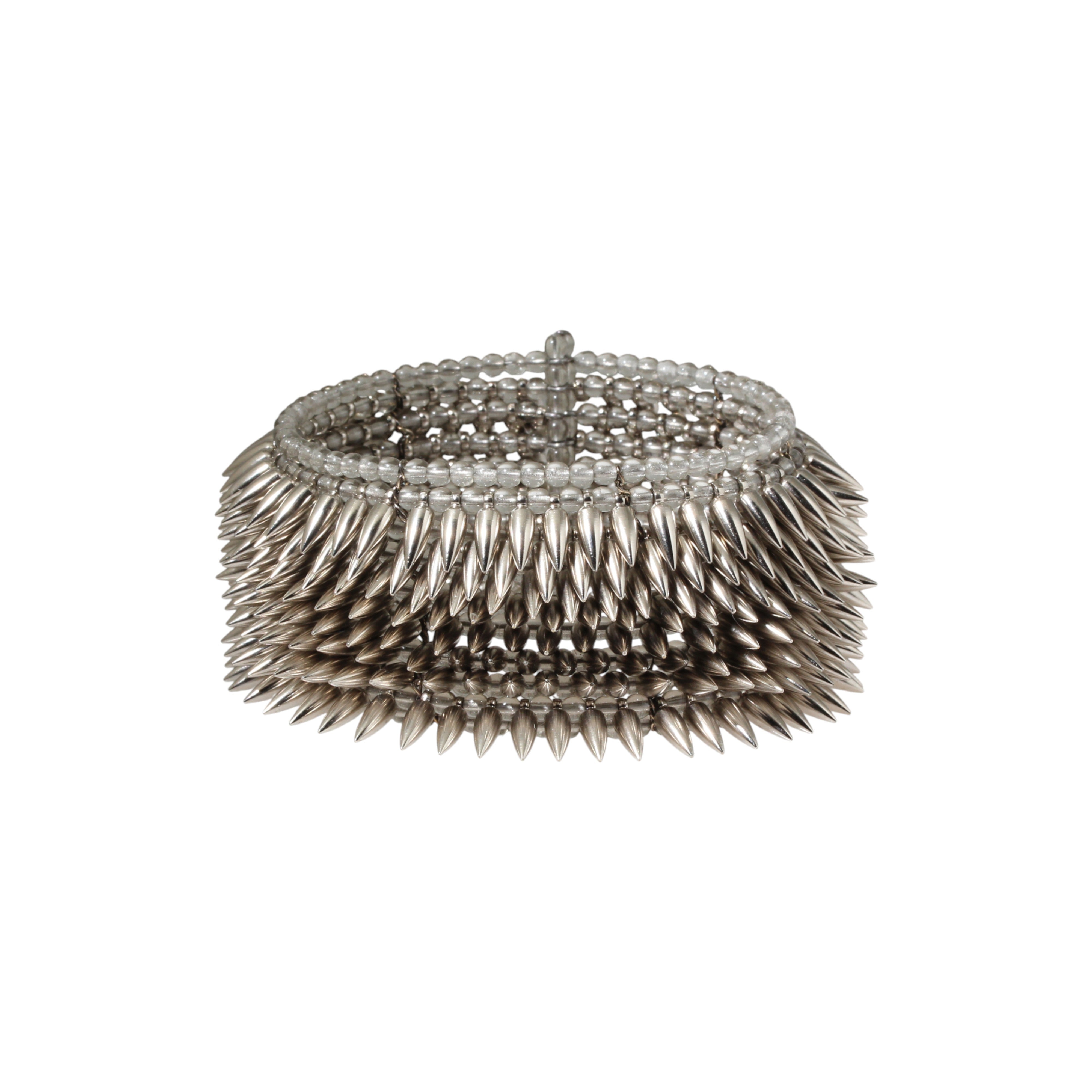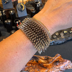 Silver Tone 8 Row Bullet Cuffsilver toned brass bullet beads, "bronze" smokey glass base beads