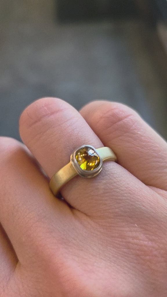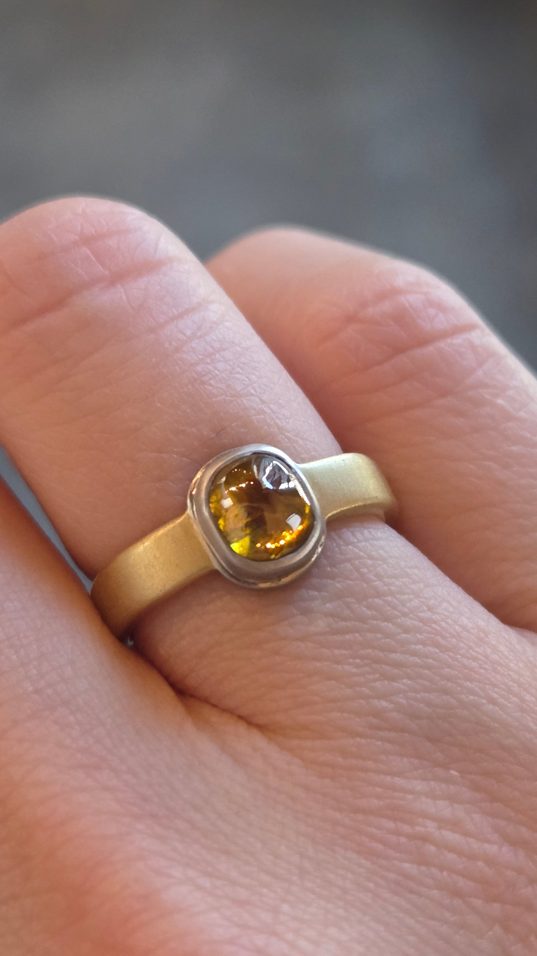 Natural Diamond Cabochon Ring in Platinum and 18k Gold1.1 carat natural golden yellow diamond cabochon set in platinum, 18k yellow gold