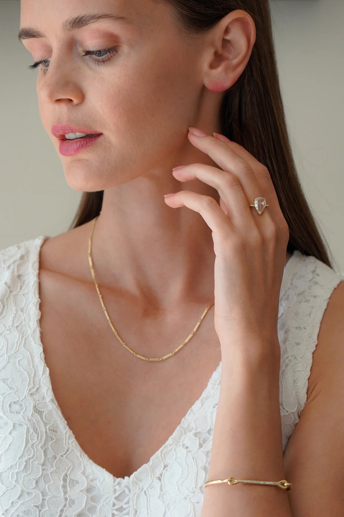 approximately 0.35 carats of baguette diamonds, recycled 18k yellow gold, tension closing mechanism