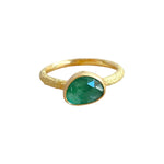 Organic Celadon Tourmaline Solitaire Ring in Sand-Textured 18k Yellow Gold
