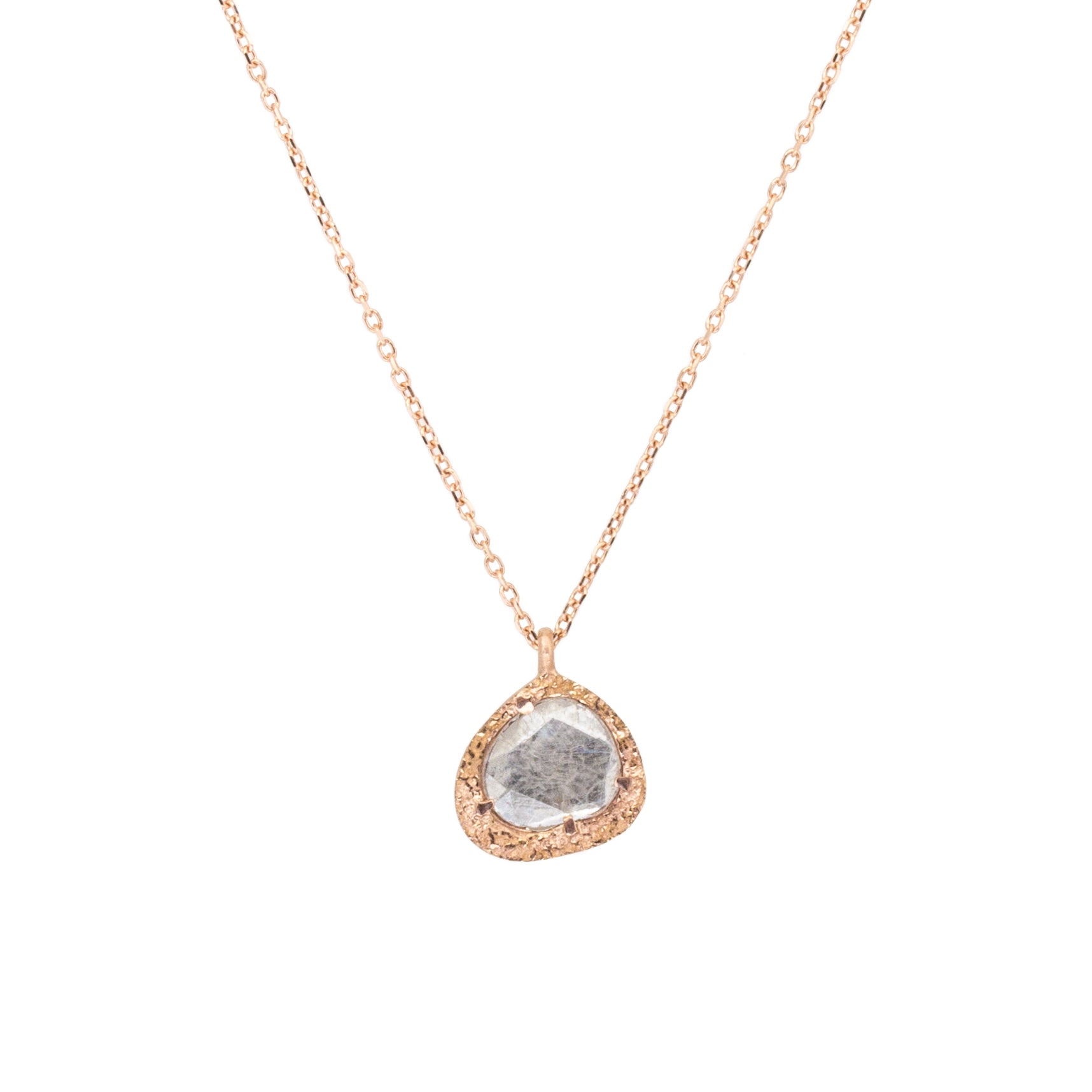 Organic Diamond Slice Pendant in Sand-Textured 14k Rose Gold