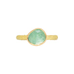 Organic Pale Emerald Solitaire Ring in Sand-Textured 18k Yellow Gold