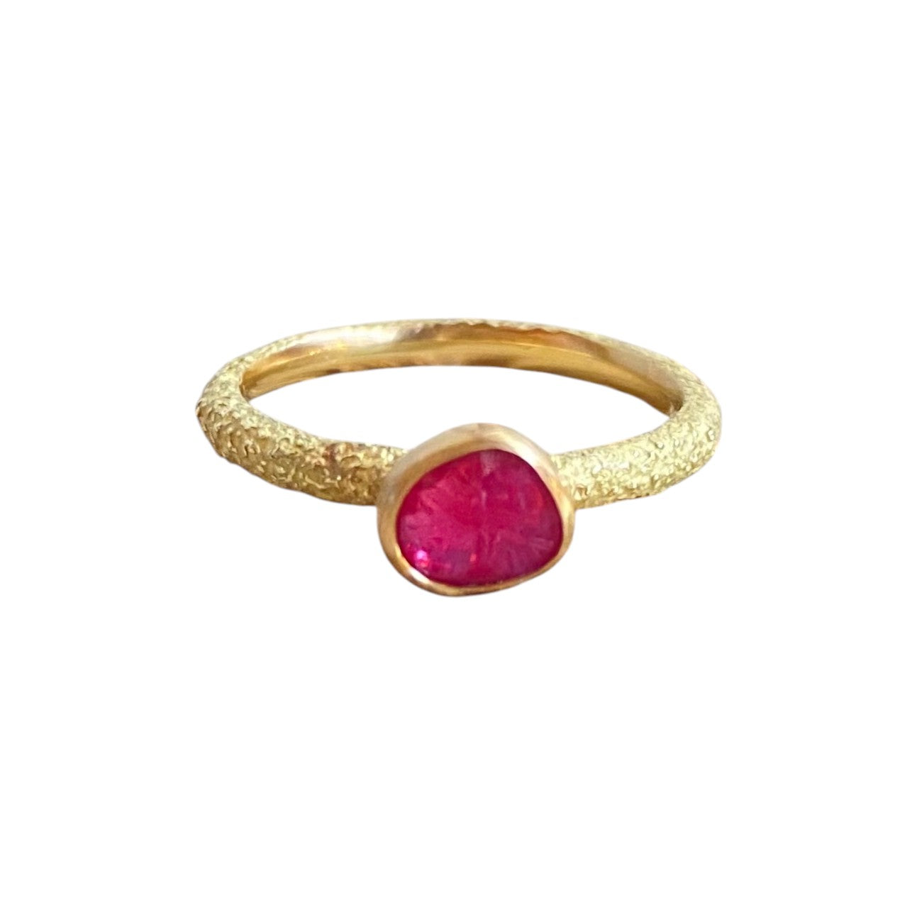 Organic Pink Spinel Solitaire Ring in Sand-Textured 18k Yellow Gold