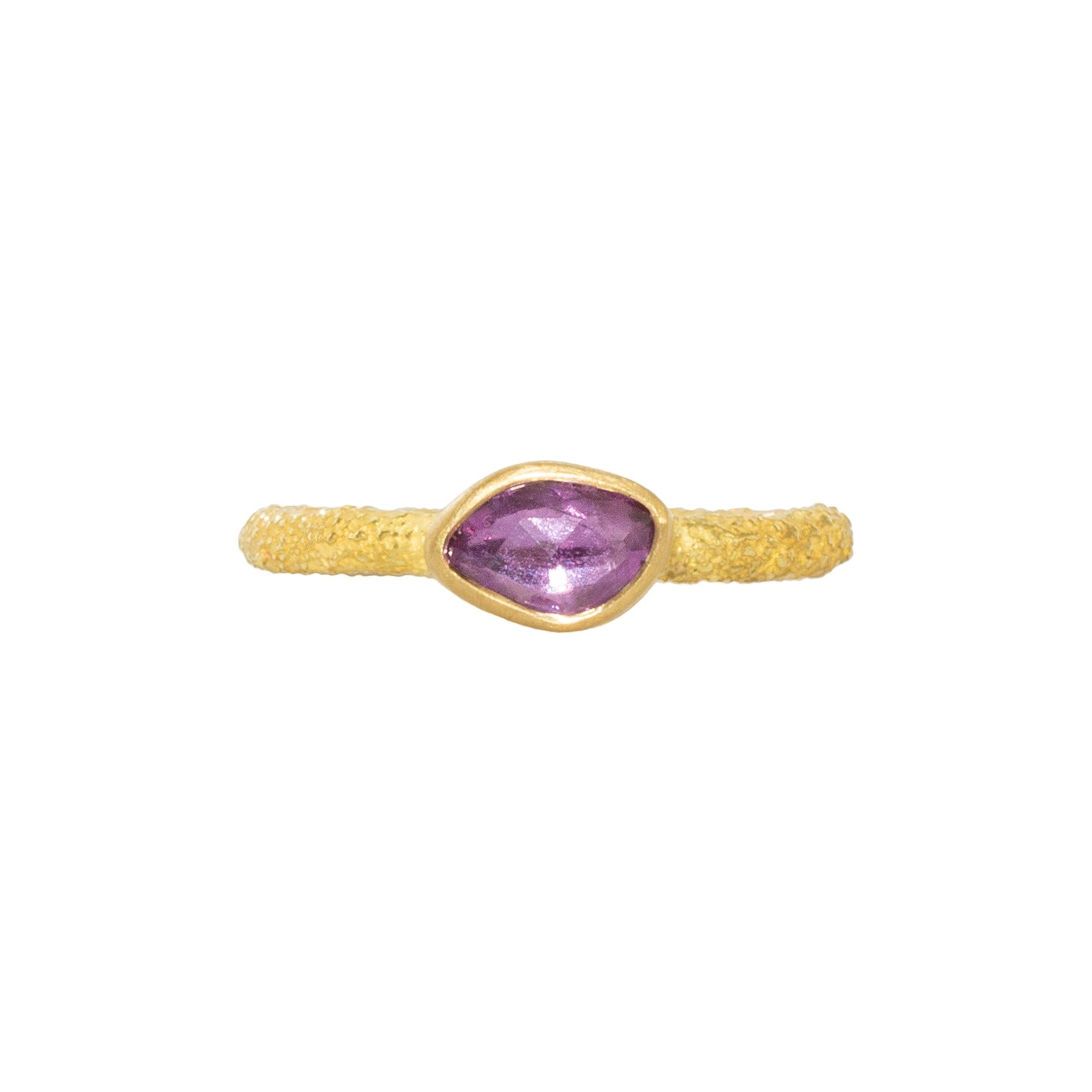 Organic Rosecut Purple Sapphire Solitaire Ring in Sand-Textured 18k Yellow Gold