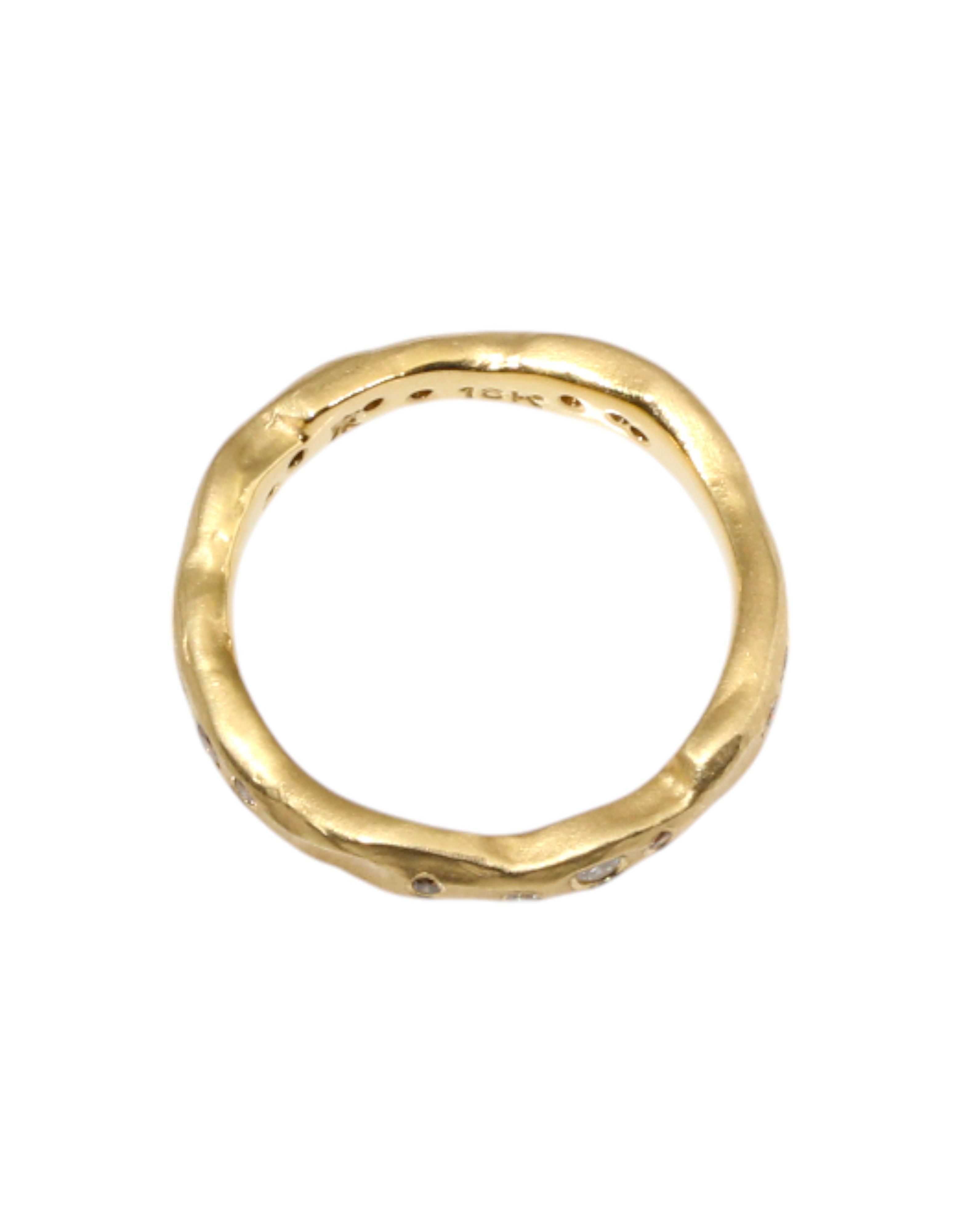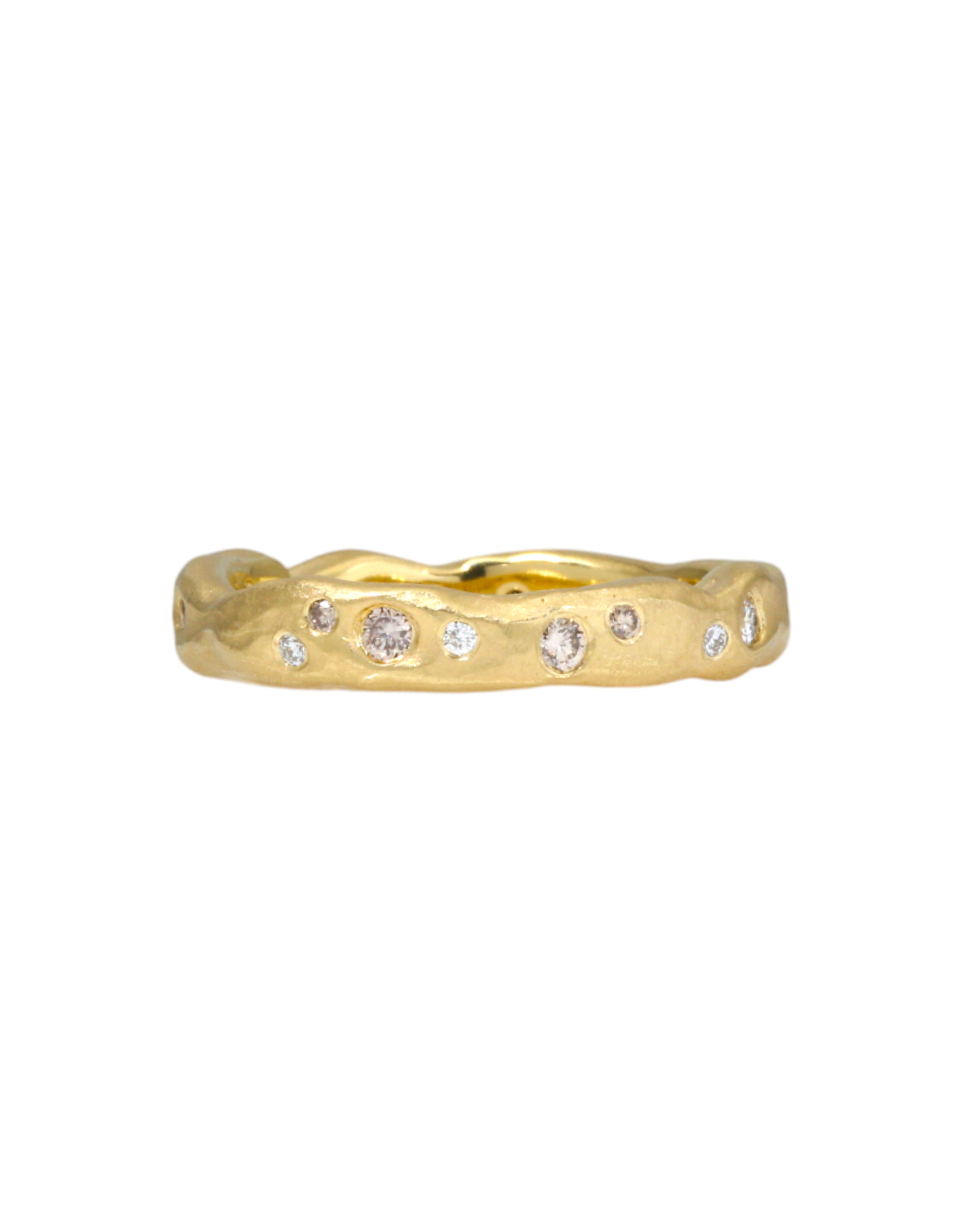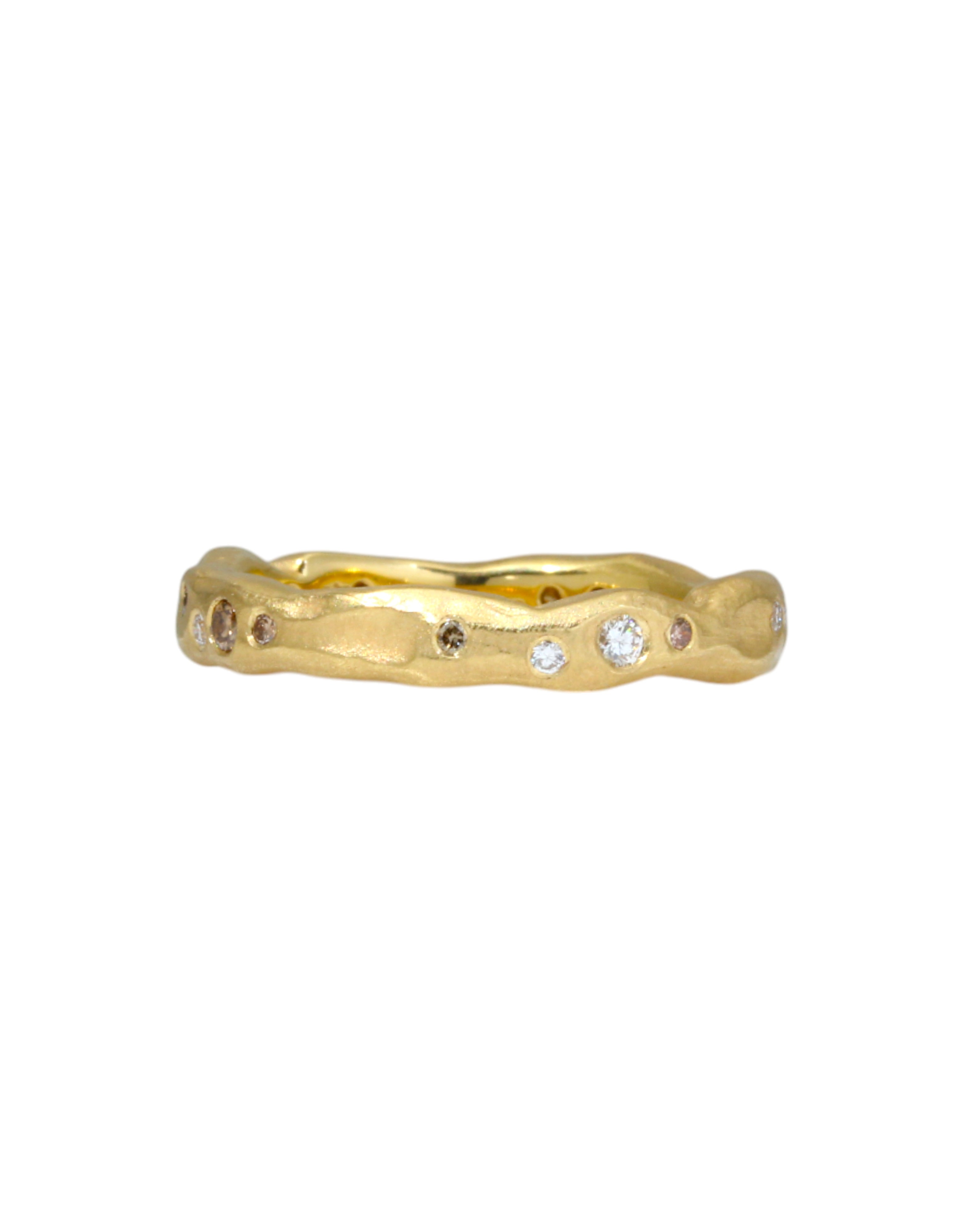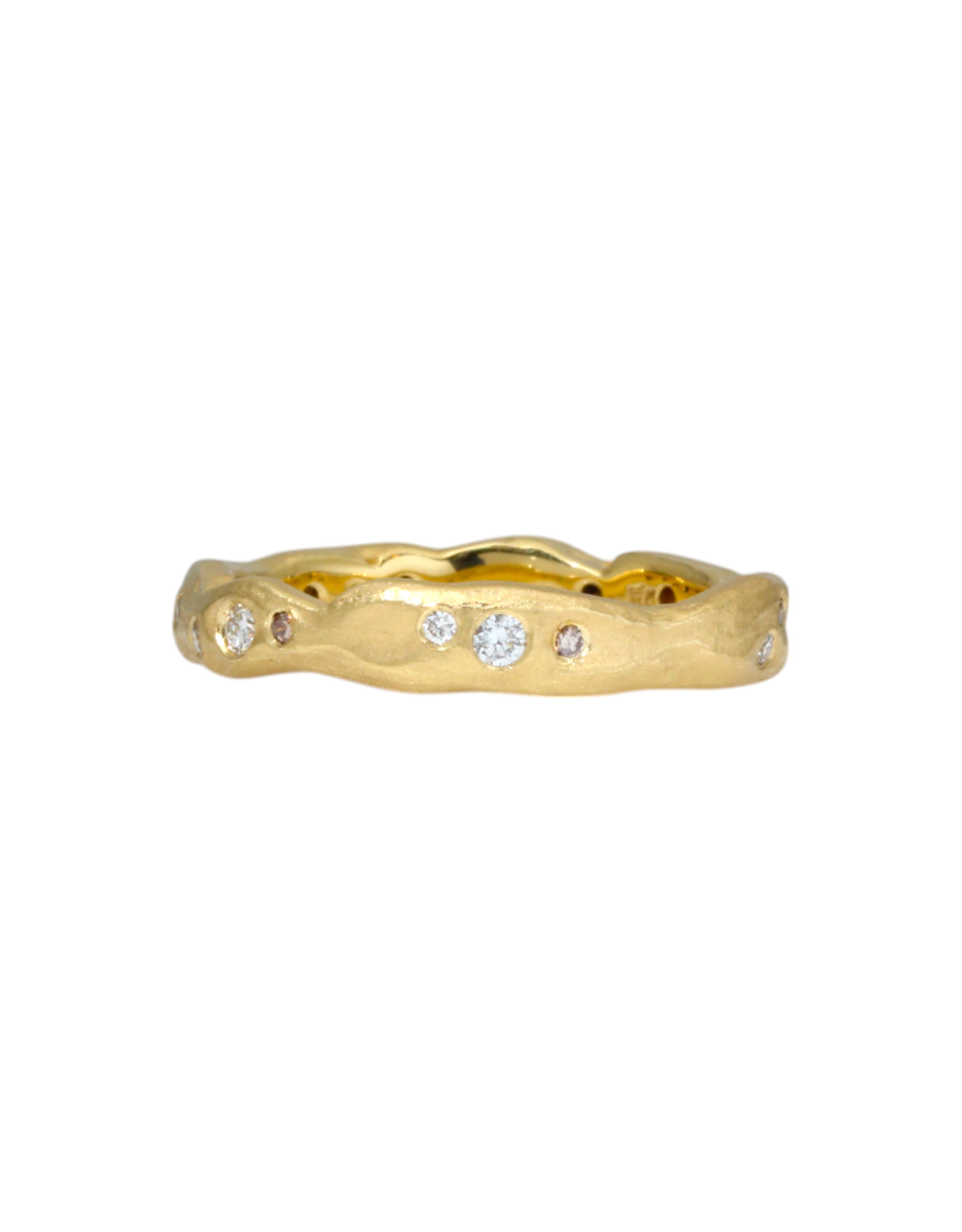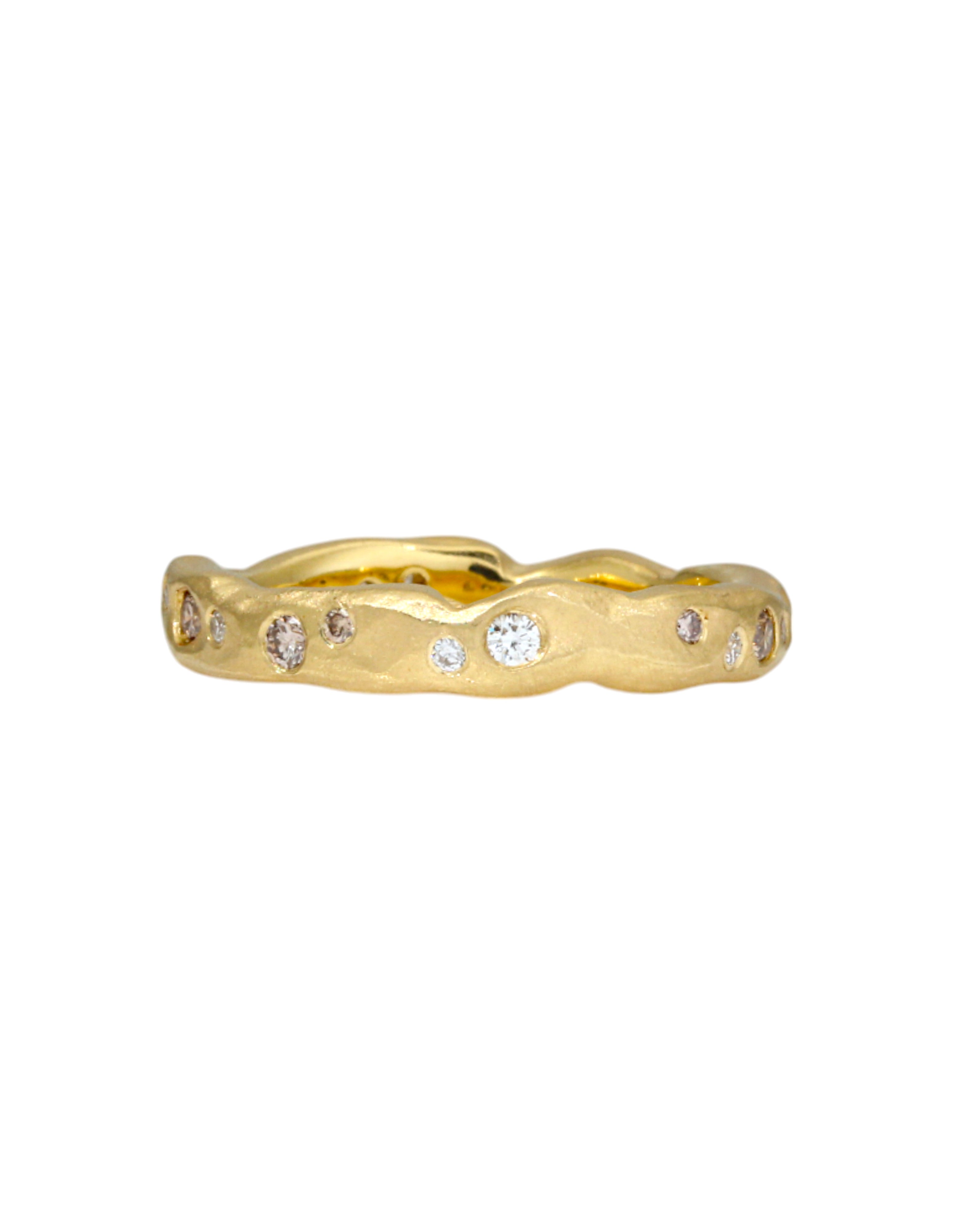Organic Texture Wave Ring in 18k Yellow Gold with White and Cognac Diamonds