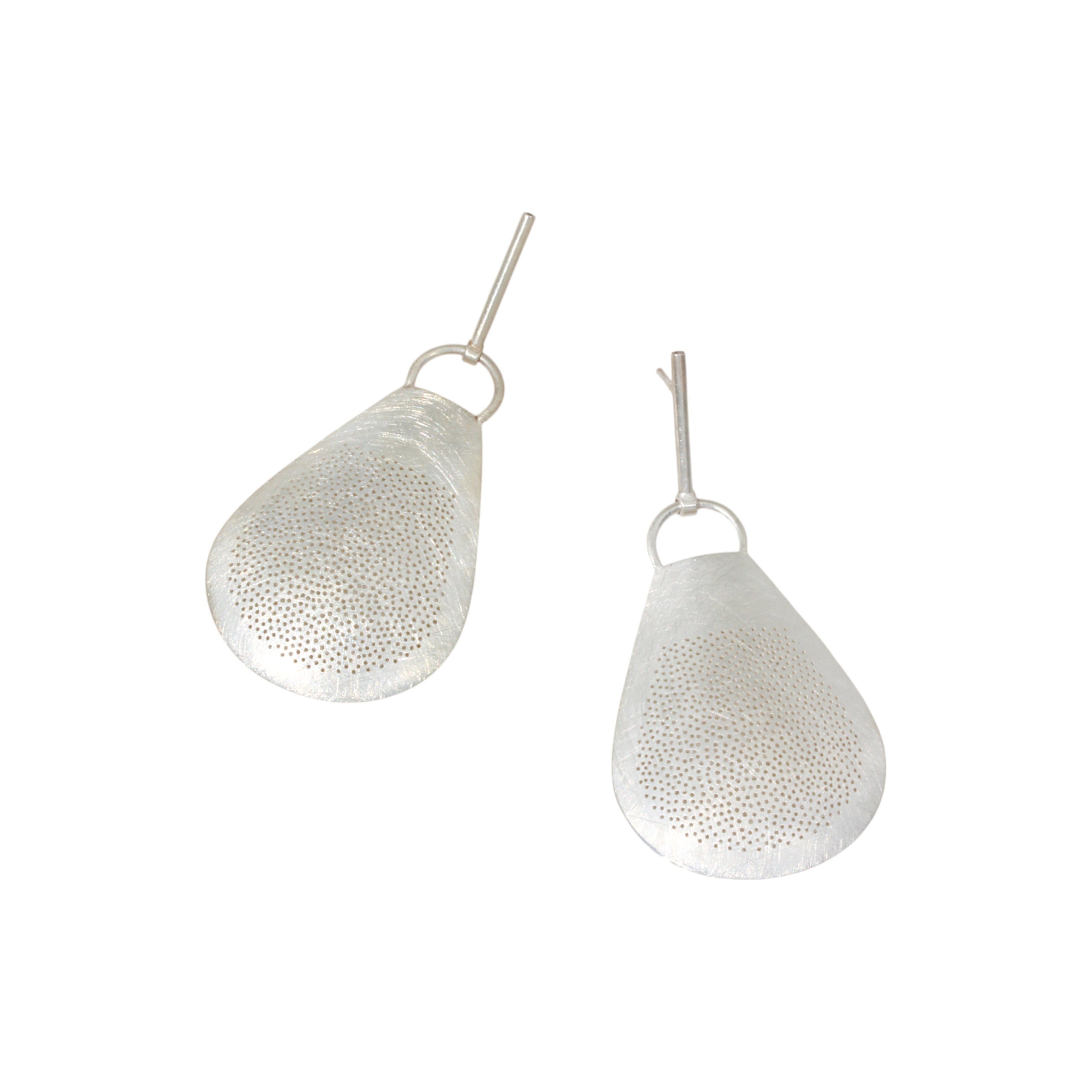 Perforated Wide Paddle Earrings in Brushed Silver