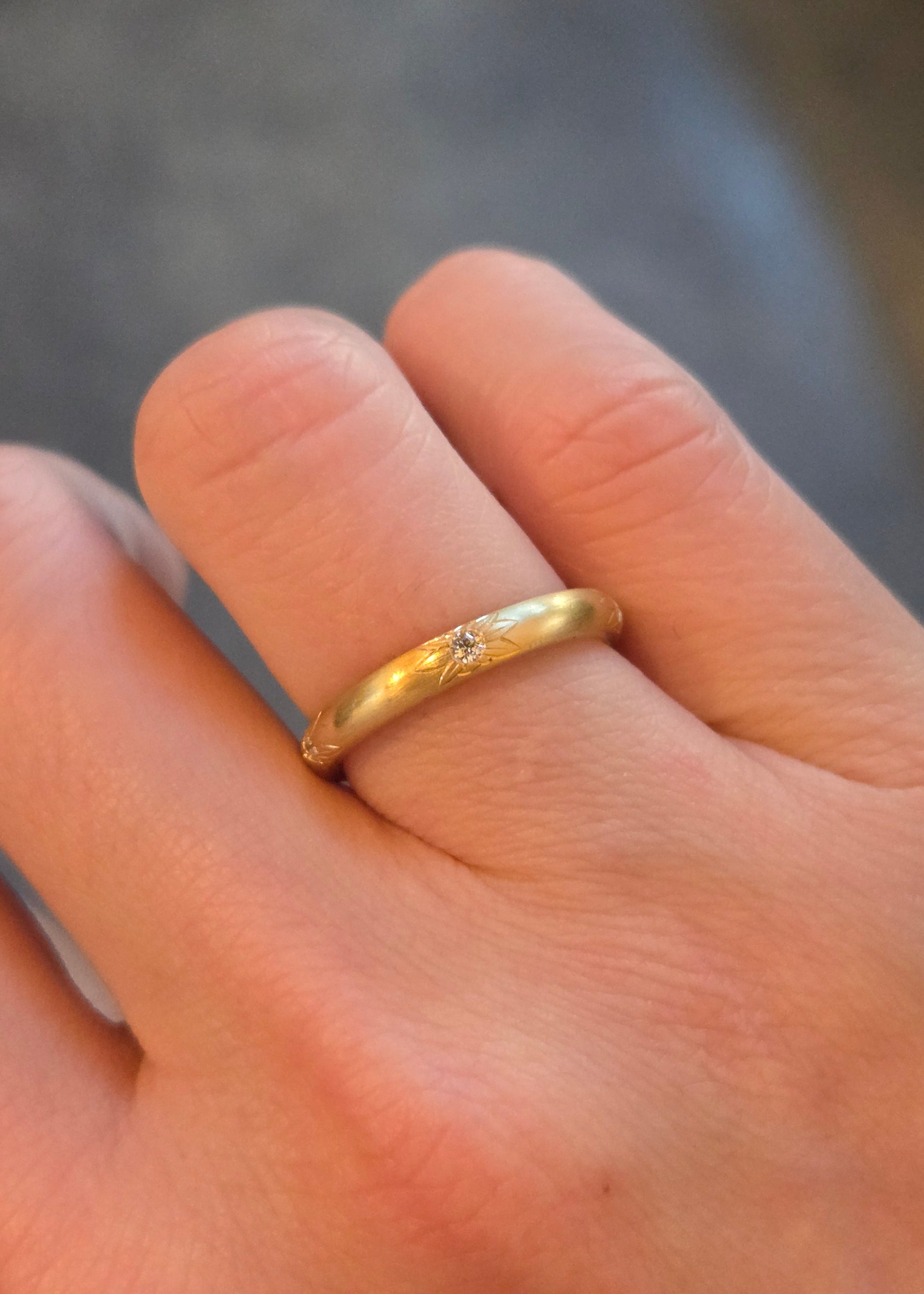Petal Engraved Diamond Stacking Ring18k yellow gold, Canadian mined diamonds (F color, VS2 clarity)