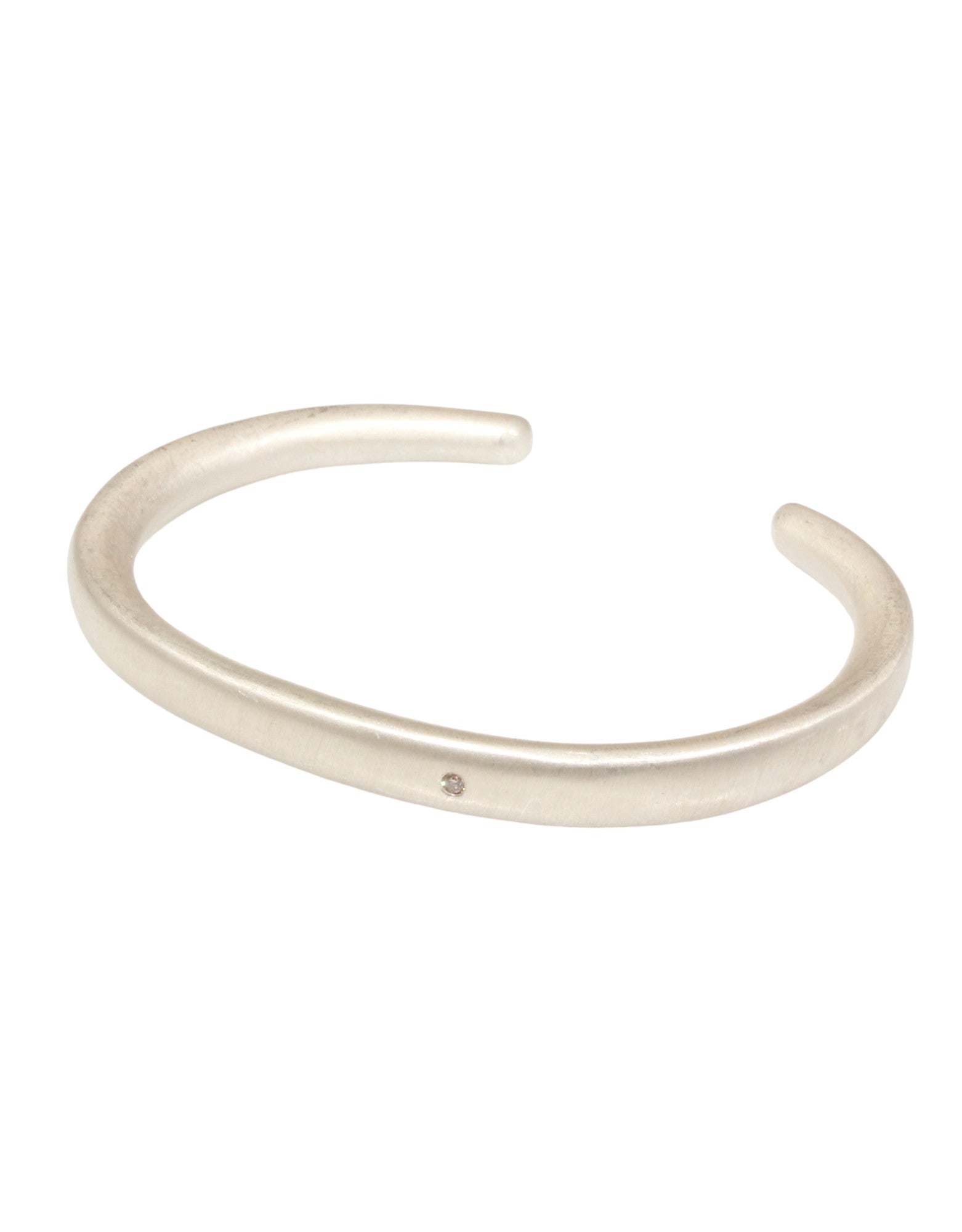 Plain Cuff in Silver with (1) White Diamond