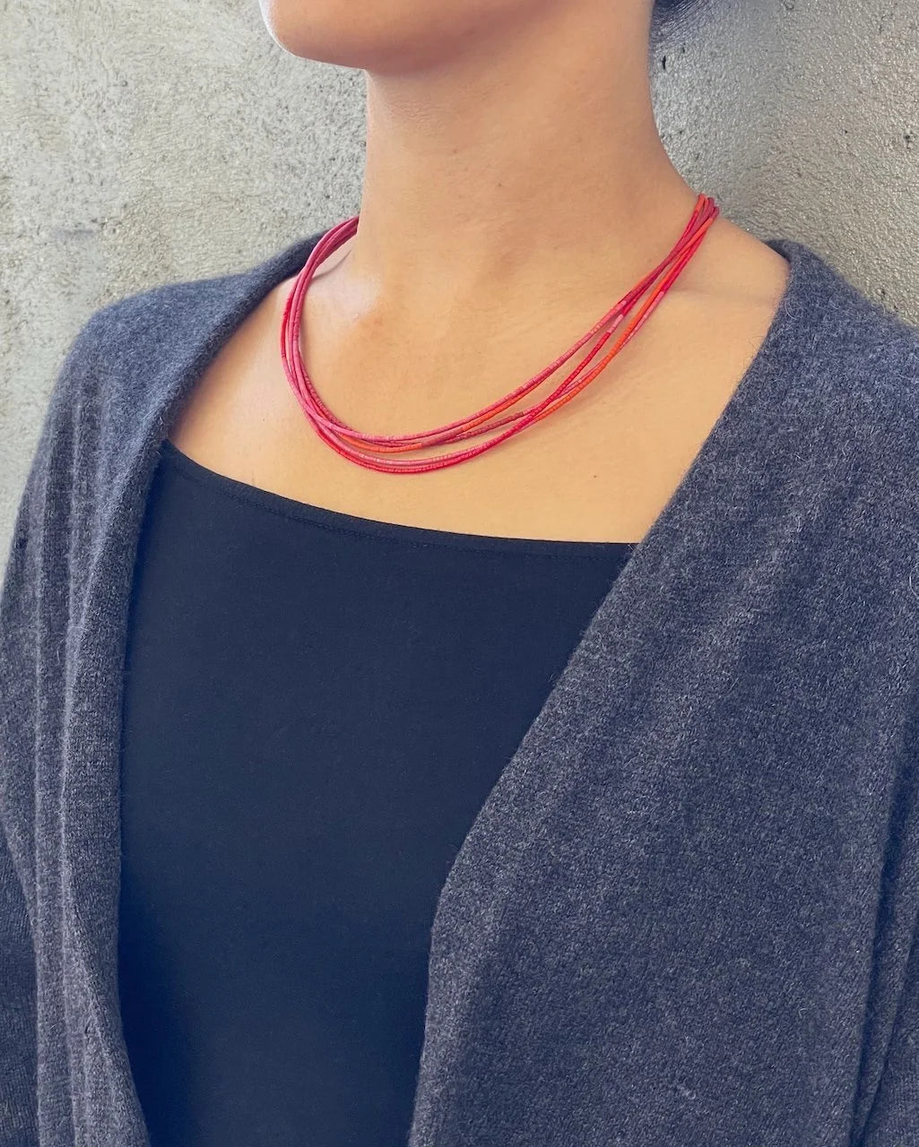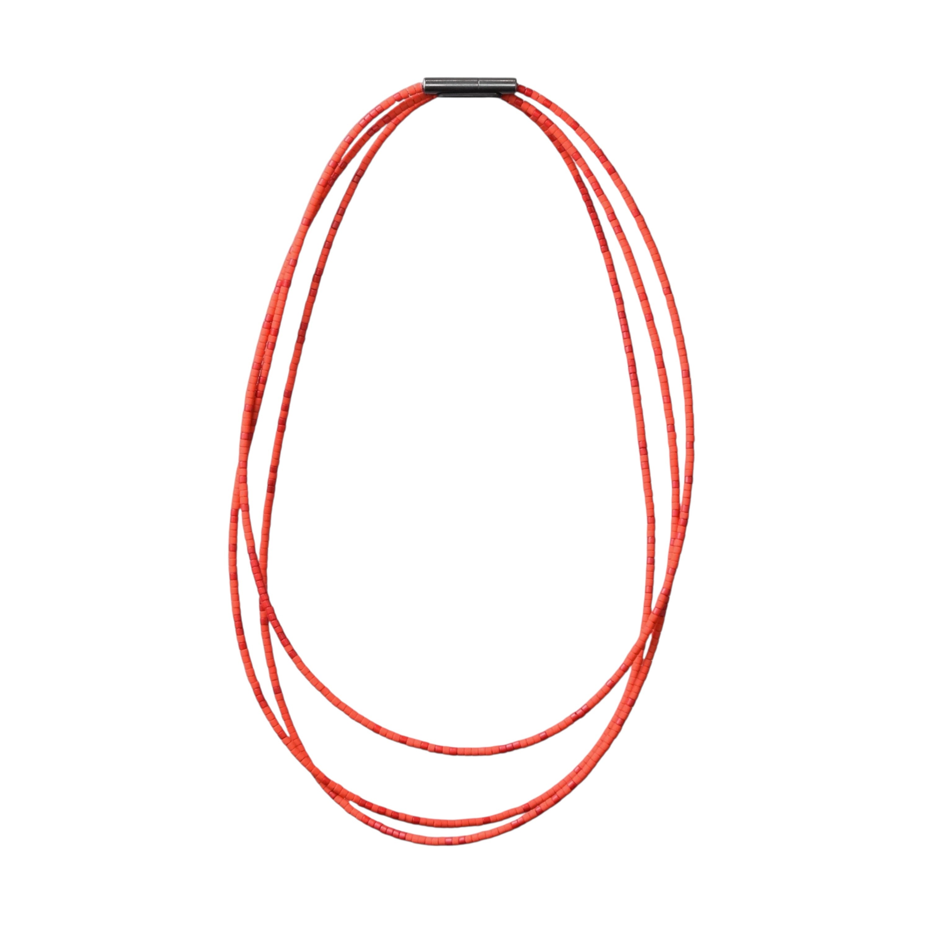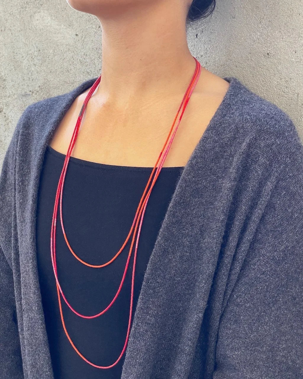 Julia TurnerPoppy Sweep Necklace in Orange, Pink, & RedJapanese glass Delica beads, oxidized silver, stainless steel cable, magnets