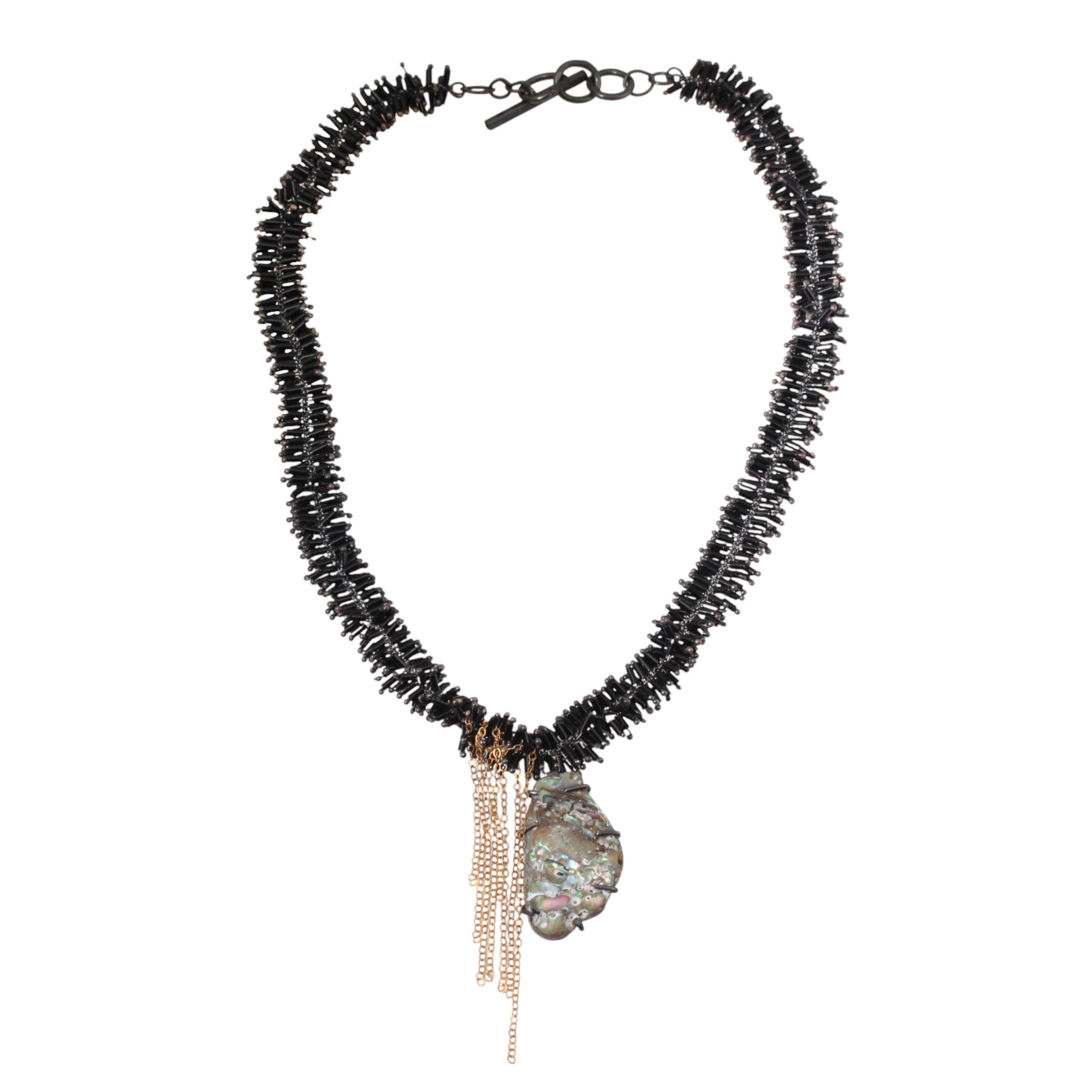Necklace with Black Glass, abalone & gold plated chainblack glass beads, abalone, gold chain