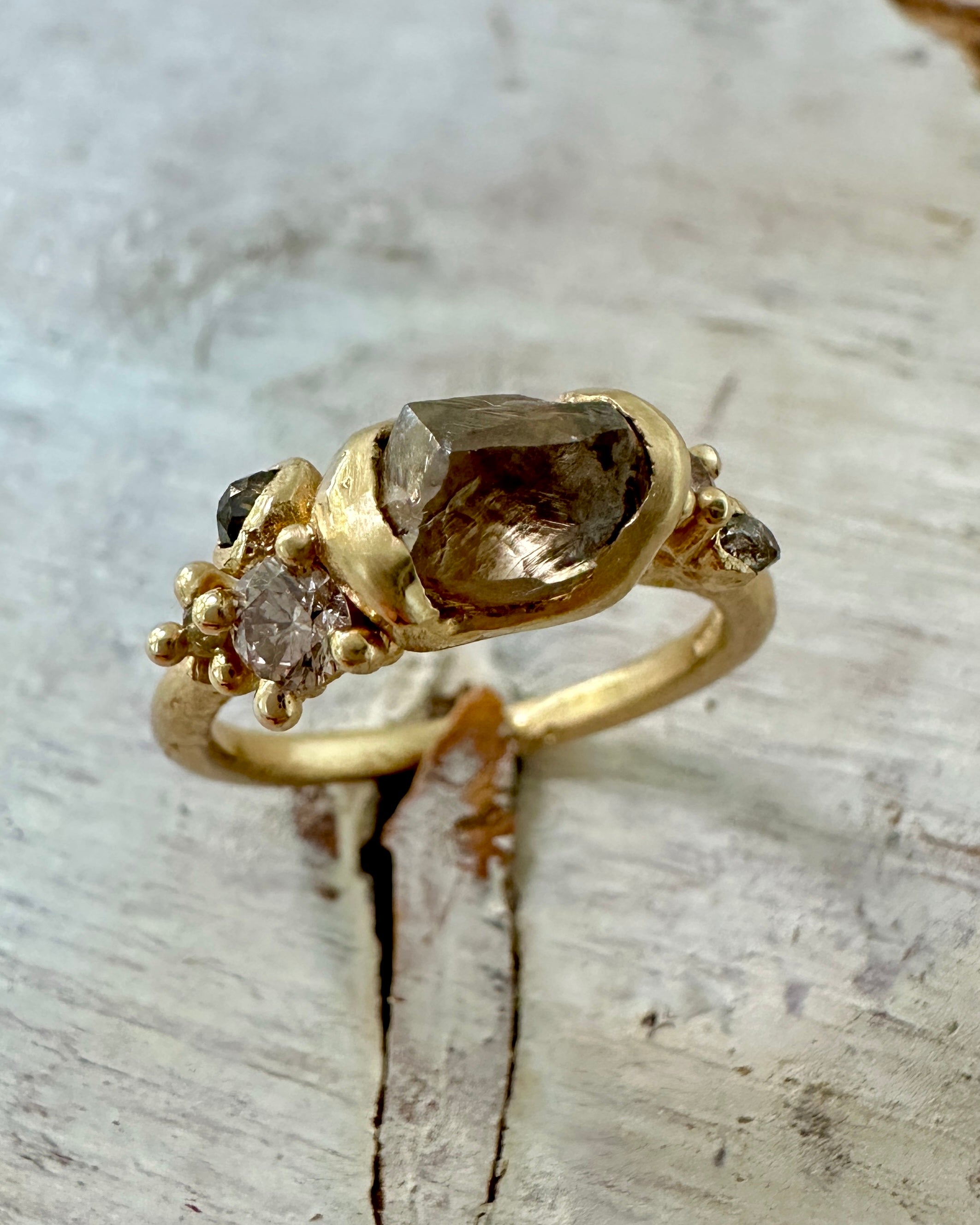 Raw Diamond Cluster Ring with Champagne Diamonds in 14k Yellow Gold14k yellow gold, 1.5ct raw diamond, champagne diamonds (0.38ct total)