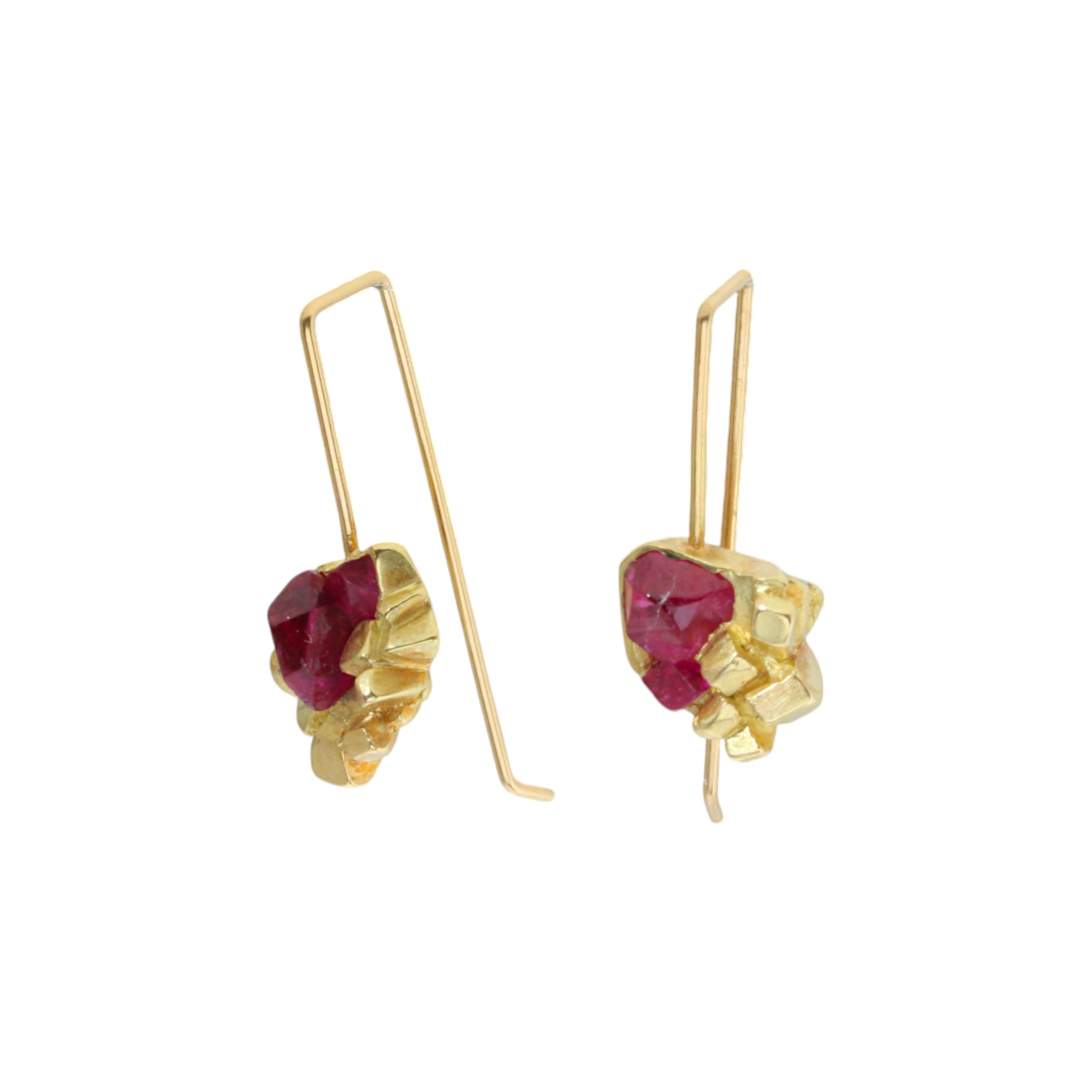Rock Candy Ruby Hook Earrings in 18k GoldChatham lab-grown rubies, 18k yellow gold
