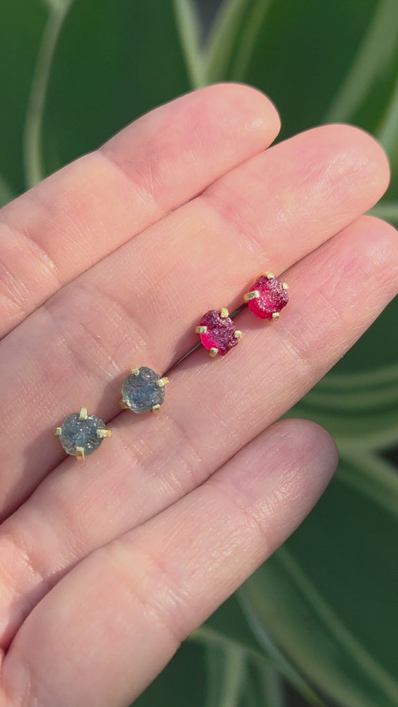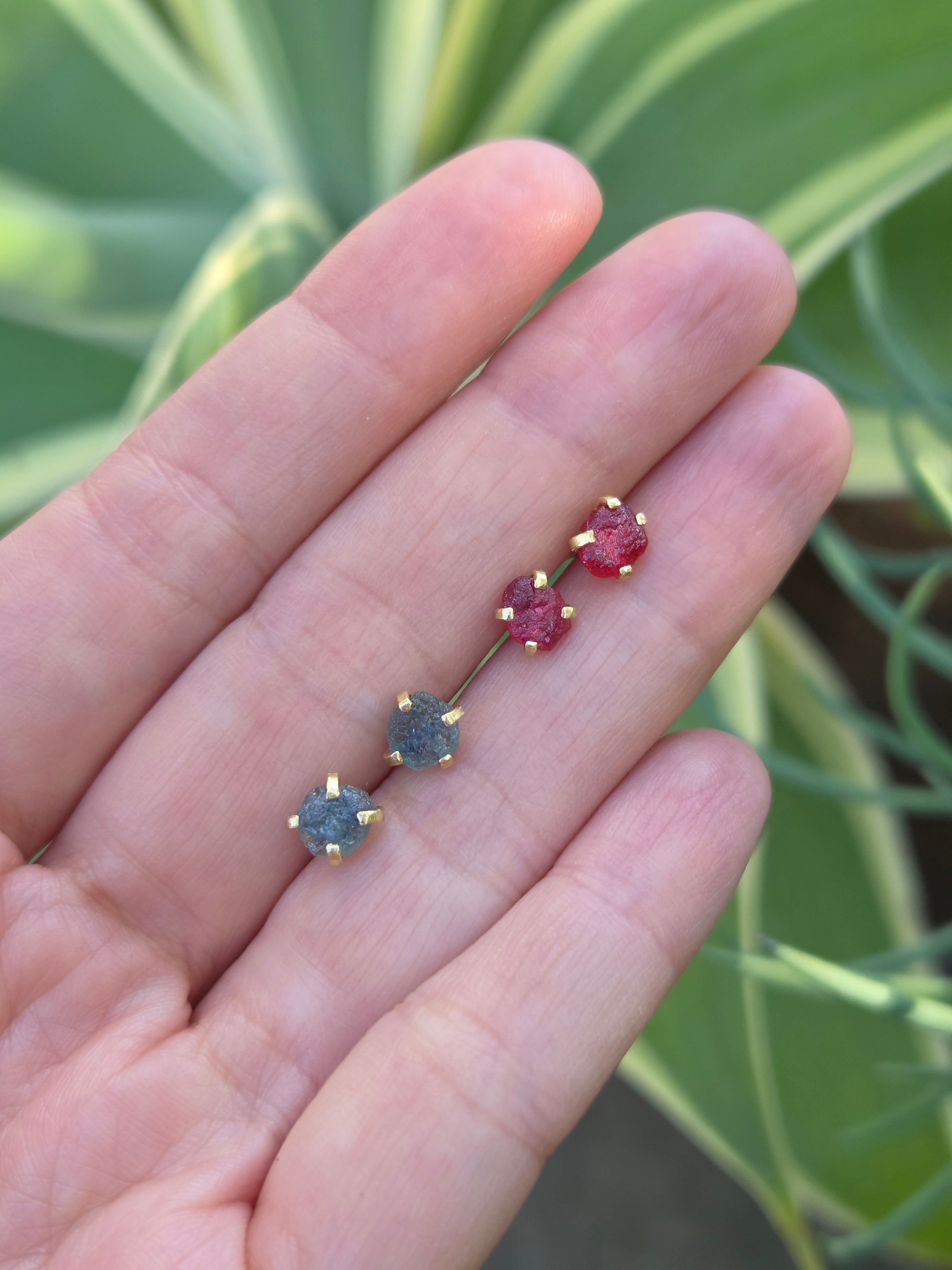 Rough Ruby Earrings in 18k Yellow Gold6mm rough cut rubies, 18k yellow gold