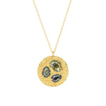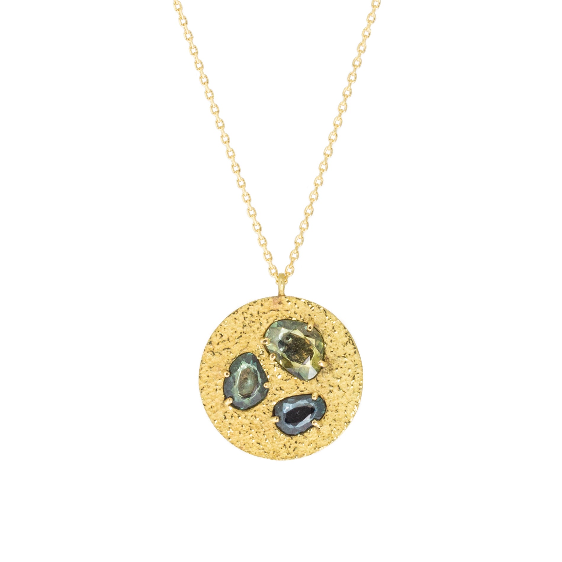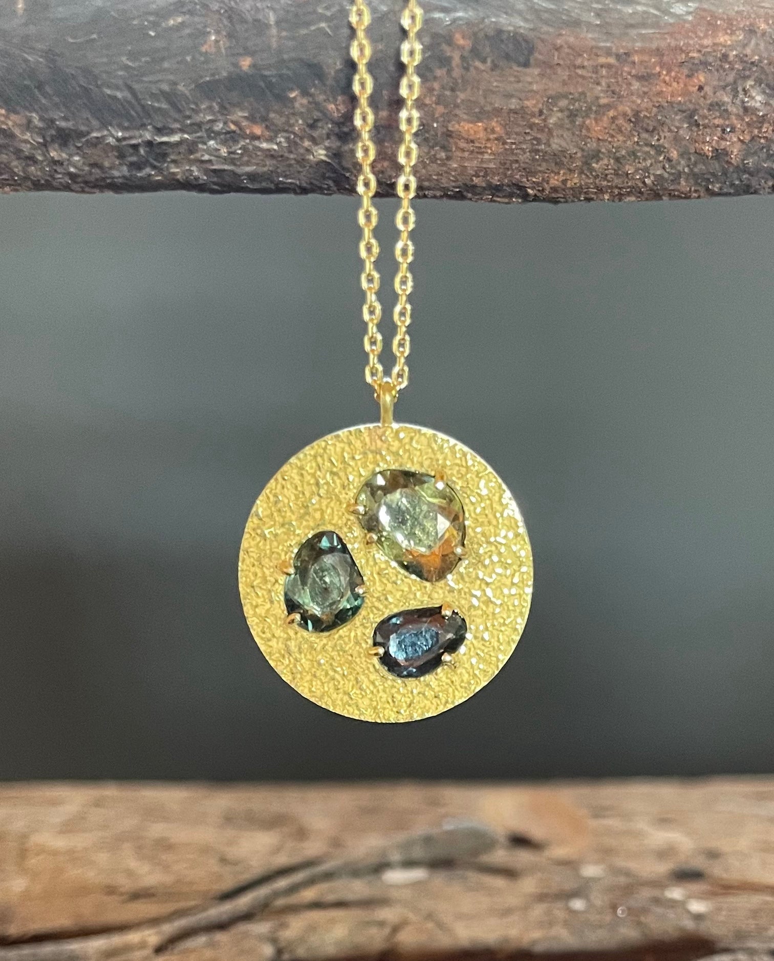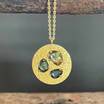 Round Pendant with Tri-Color Sapphires in Sand-Textured 18k Yellow Gold