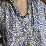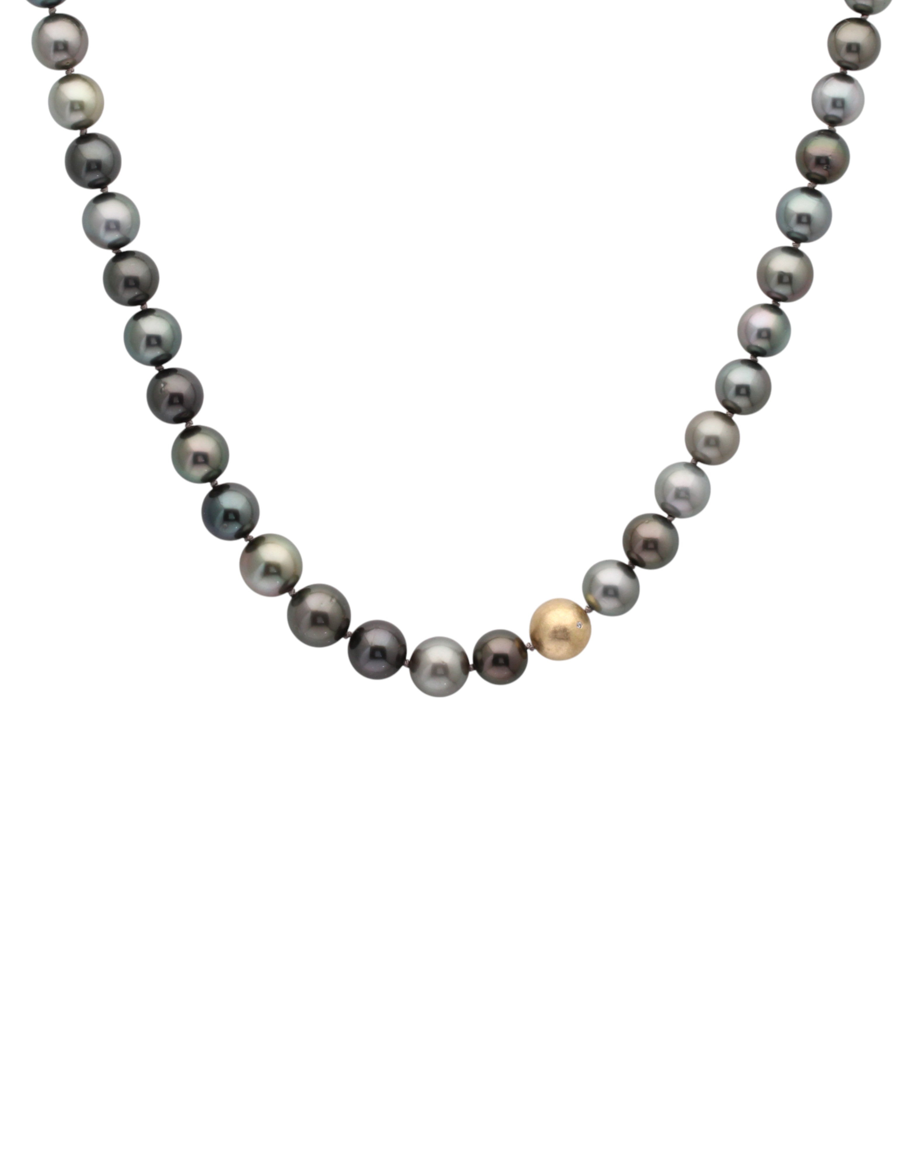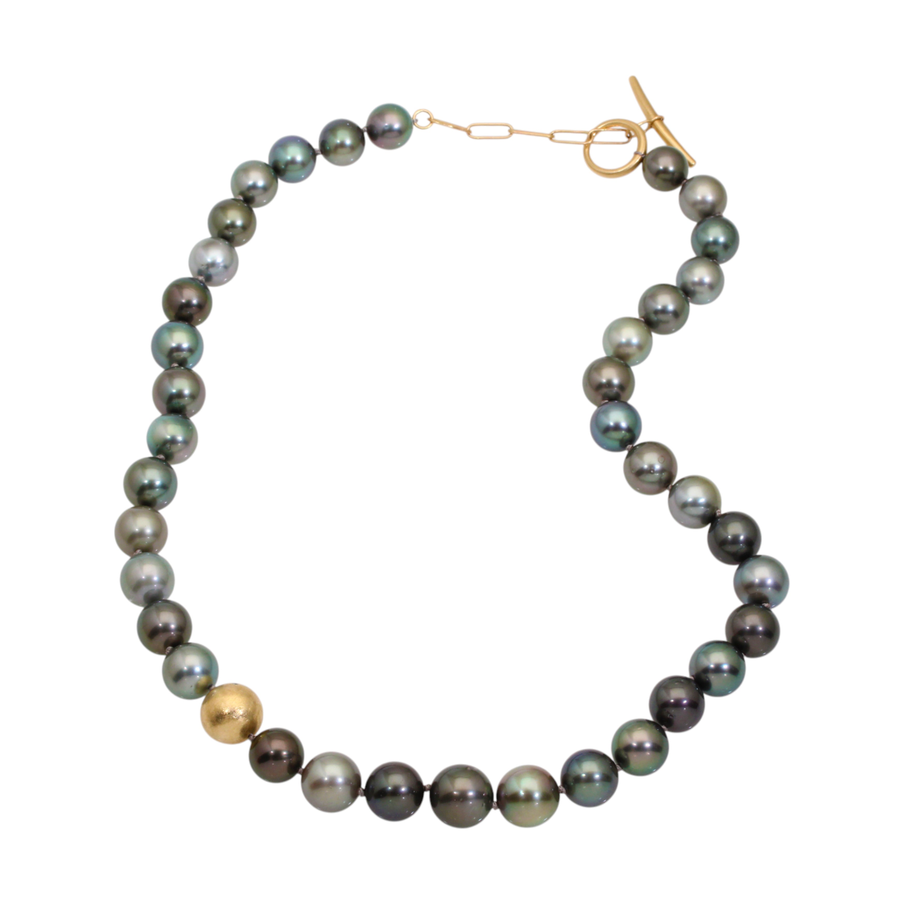 Round Tahitian Pearl Necklace with 14k Yellow Gold Bead and Toggle Clasp with Grey Diamonds