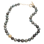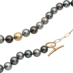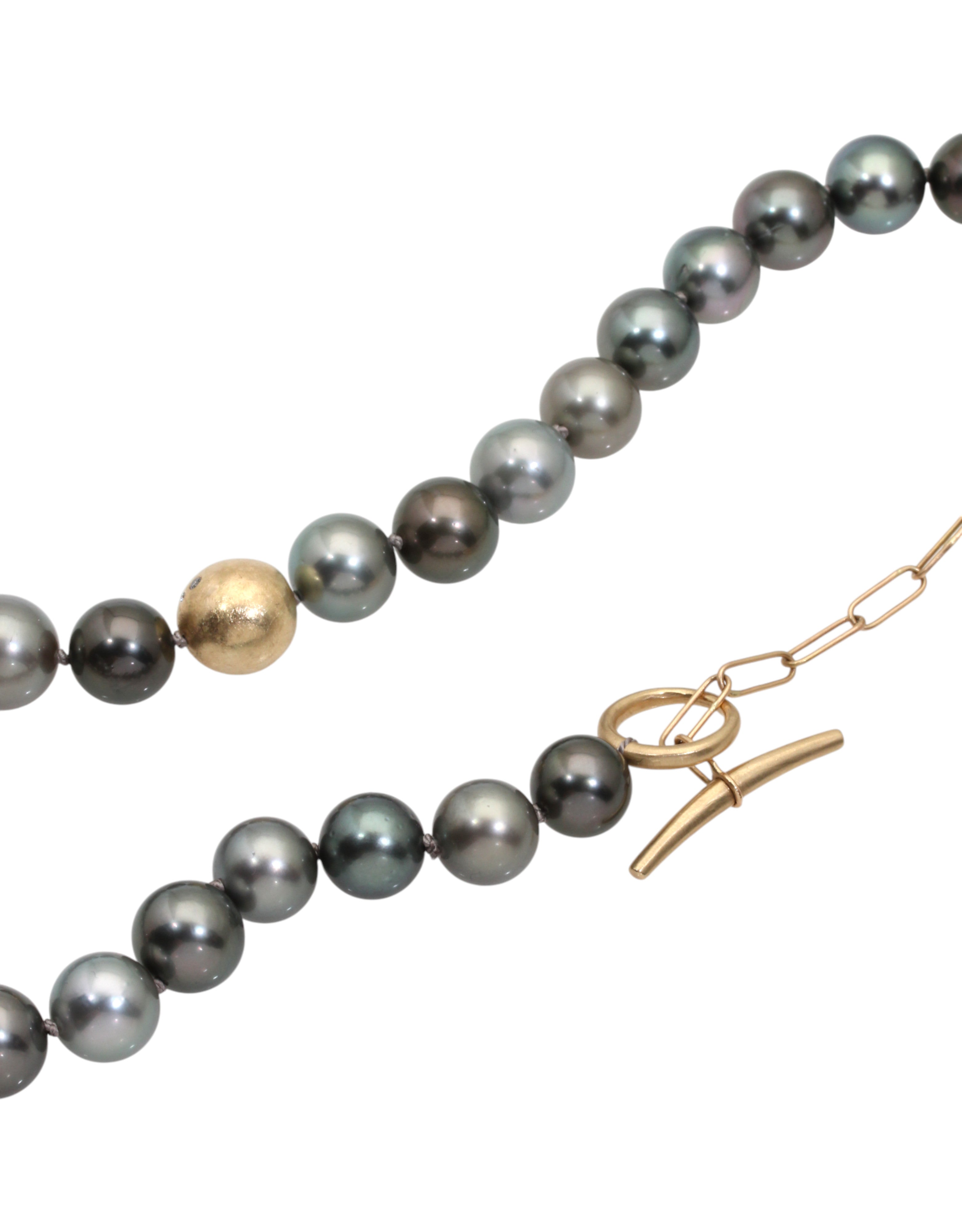 Round Tahitian Pearl Necklace with 14k Gold Bead and Toggle Clasp with Grey Diamonds