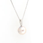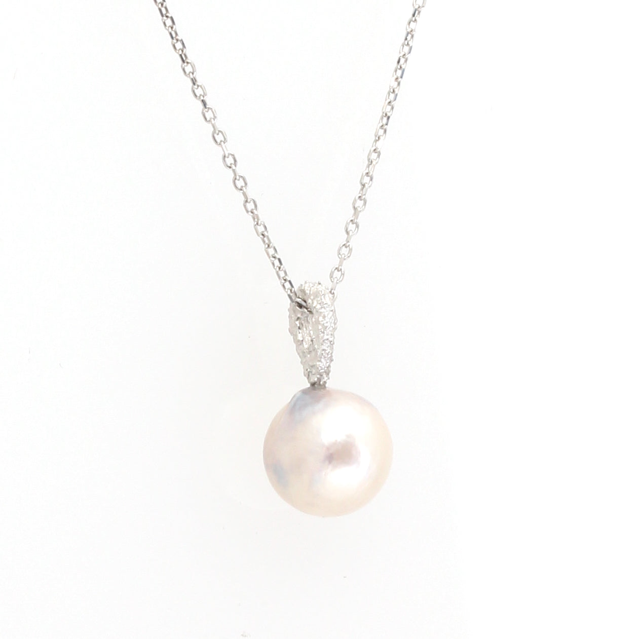 Round White & Grey/Blue Pearl Pendant with Sand-Textured Platinum