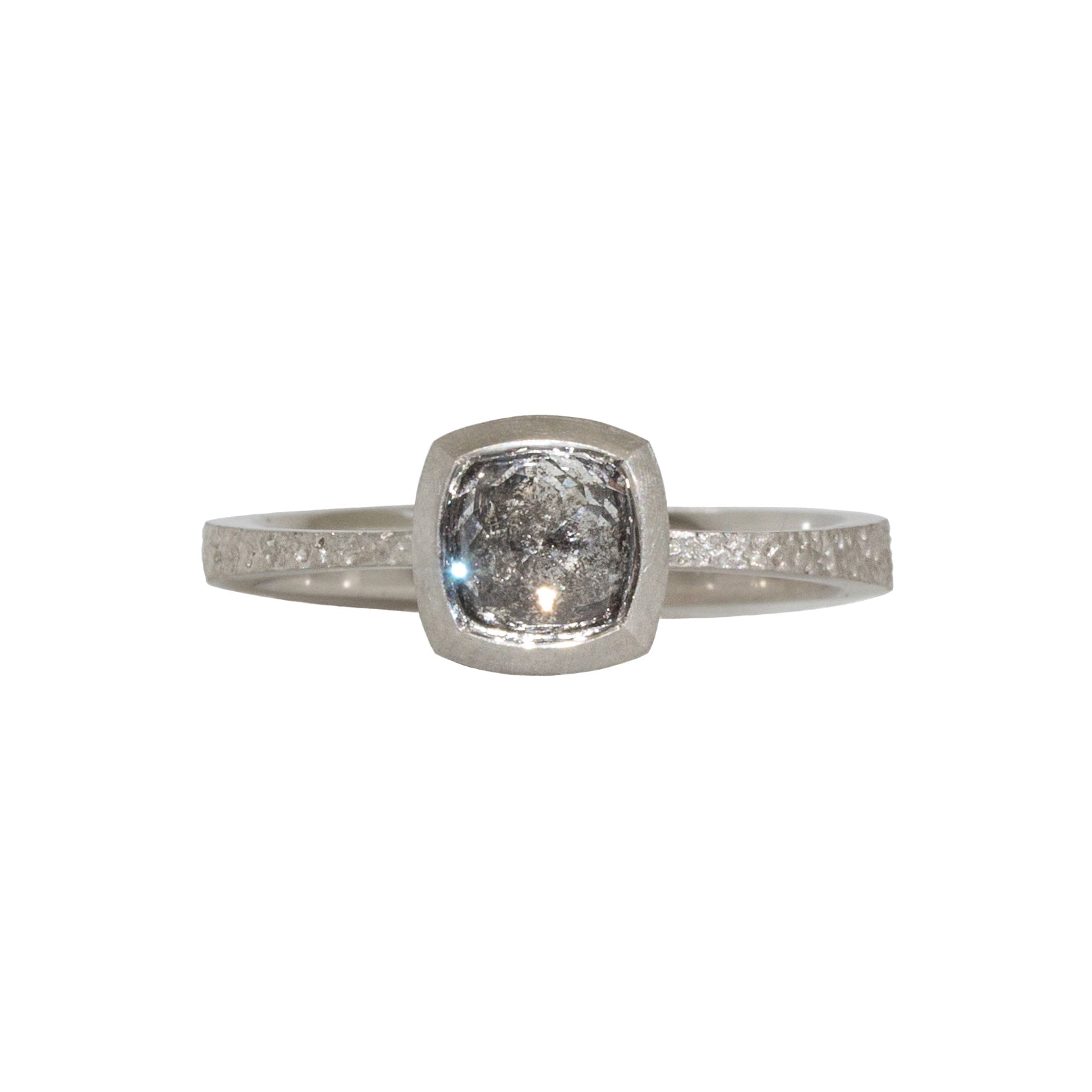Rounded Square Diamond Solitaire Ring in Sand-Textured Platinum