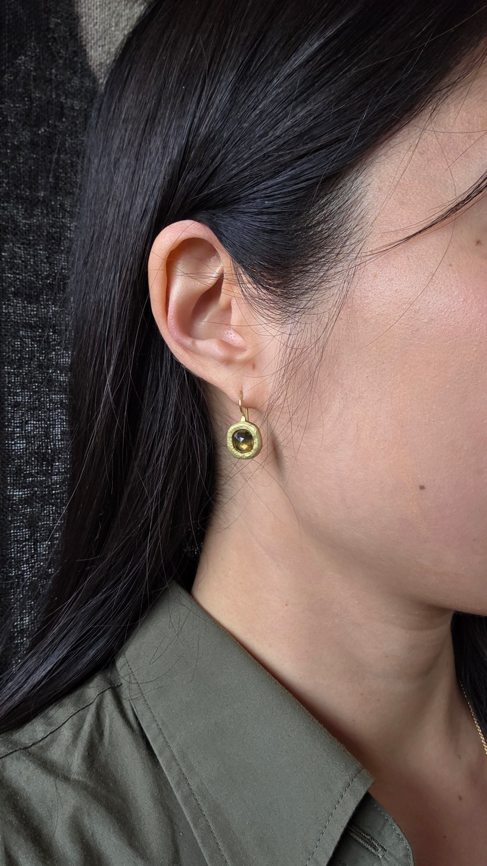 Rustic Cognac Diamond Dangle Earrings in 18k Yellow Goldrustic cognac honey diamonds (3.33ct), 18k yellow gold, platinum foil