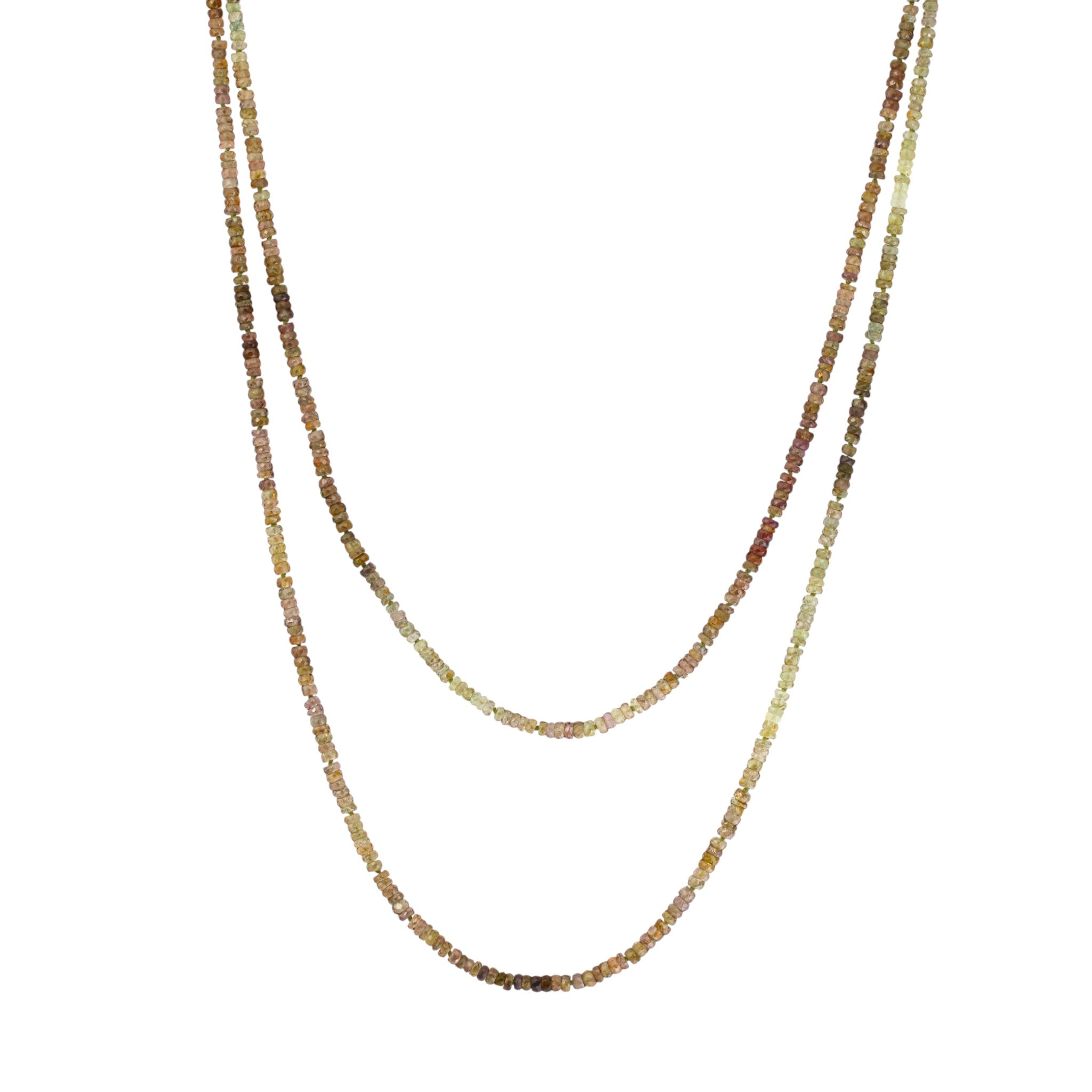 Sage and Walnut Sapphires Beaded Necklace - 46"
