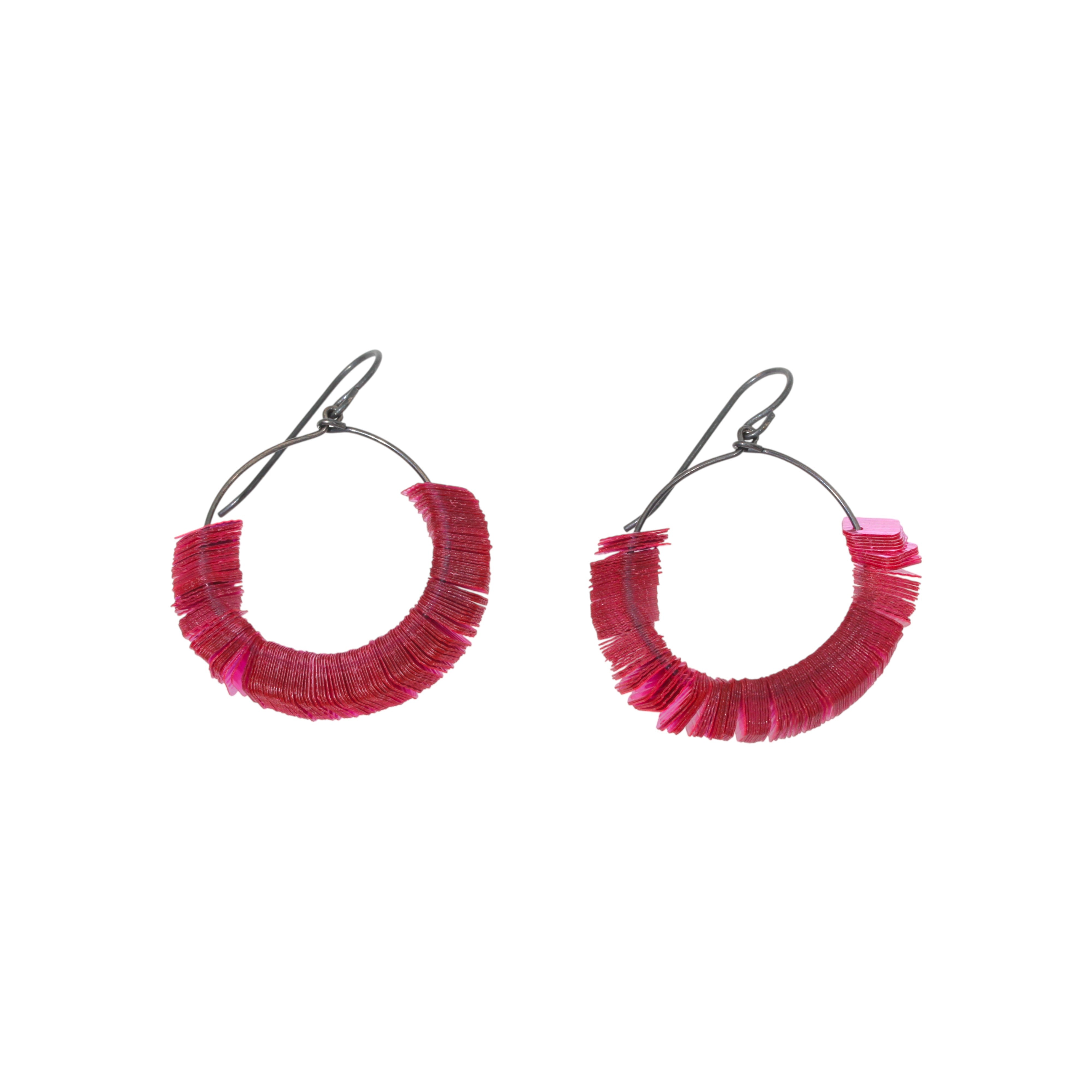 Sakura Square Hoop Earrings (one of a kind)antique gelatin sequins & oxidized silver hoop & ear wires