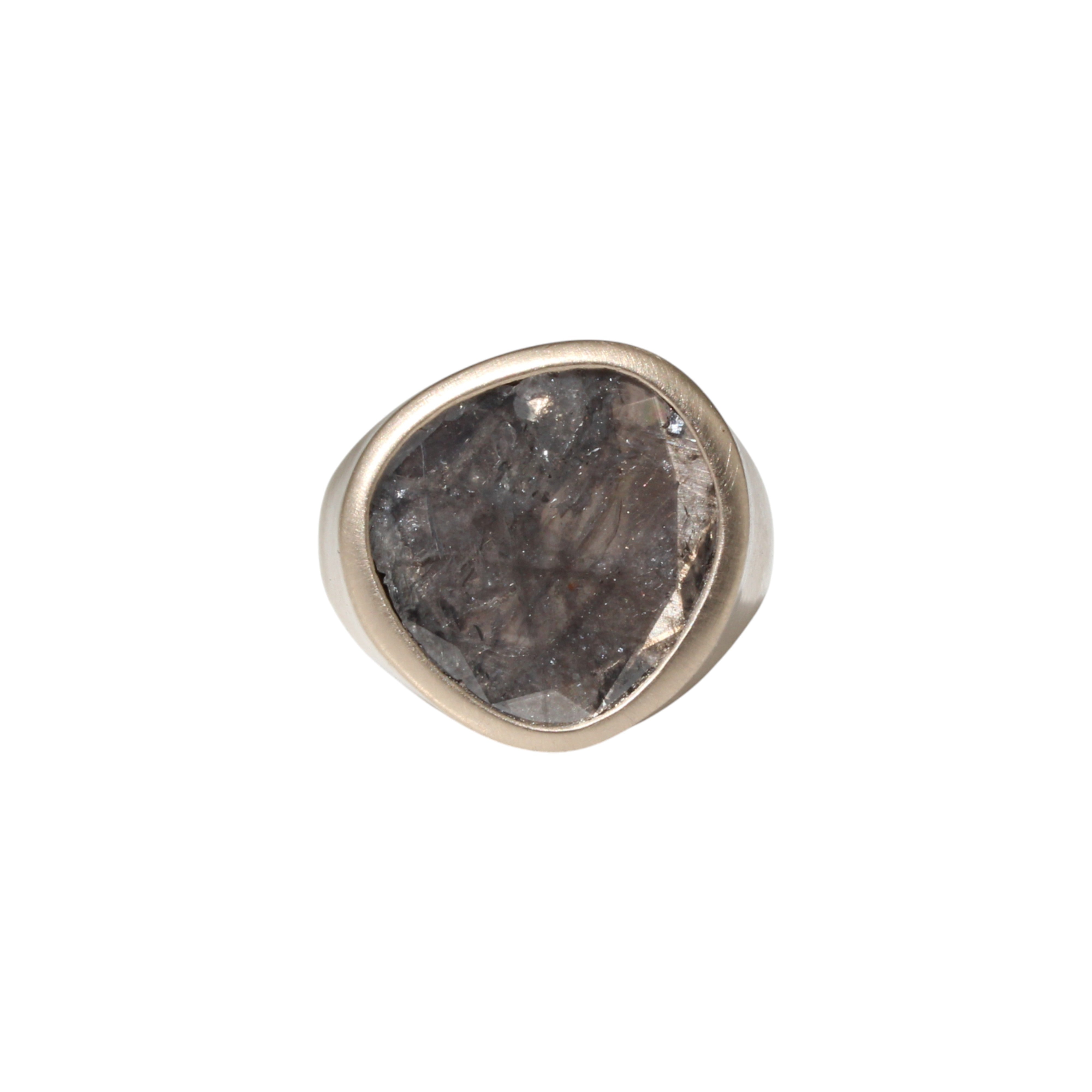 Salt and Pepper Diamond Slice Ring in 18k Palladium White Goldpalladium white. gold, salt and pepper diamond slice