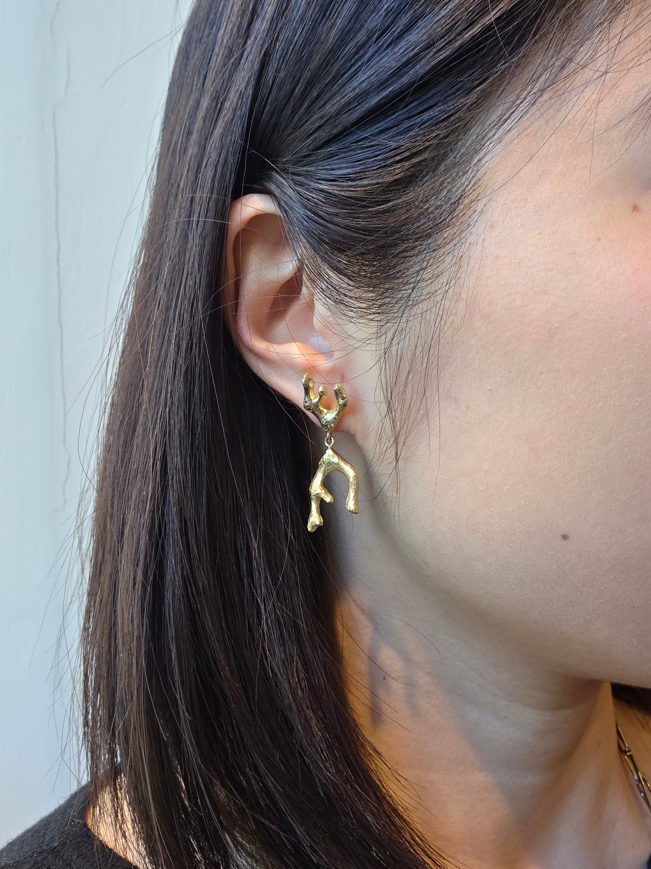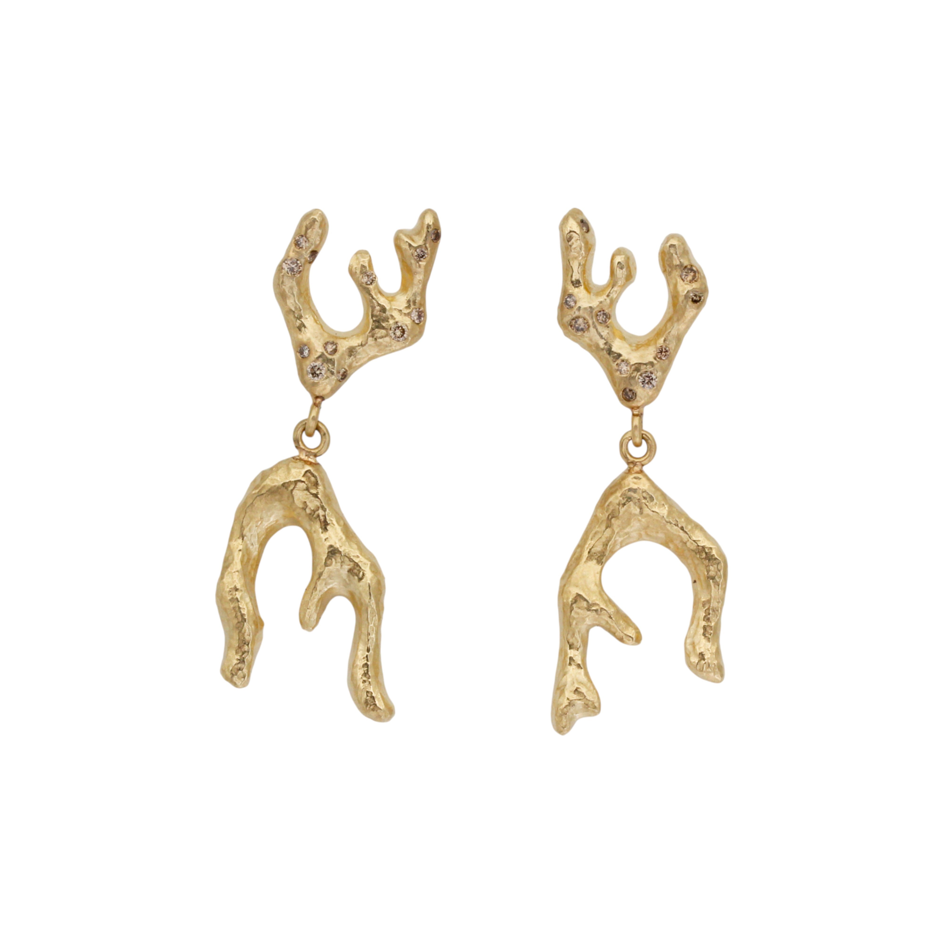 Sculpted Branch Post Dangle Earrings in 10k Yellow Gold with Cognac Diamondscognac diamonds, 10k yellow gold