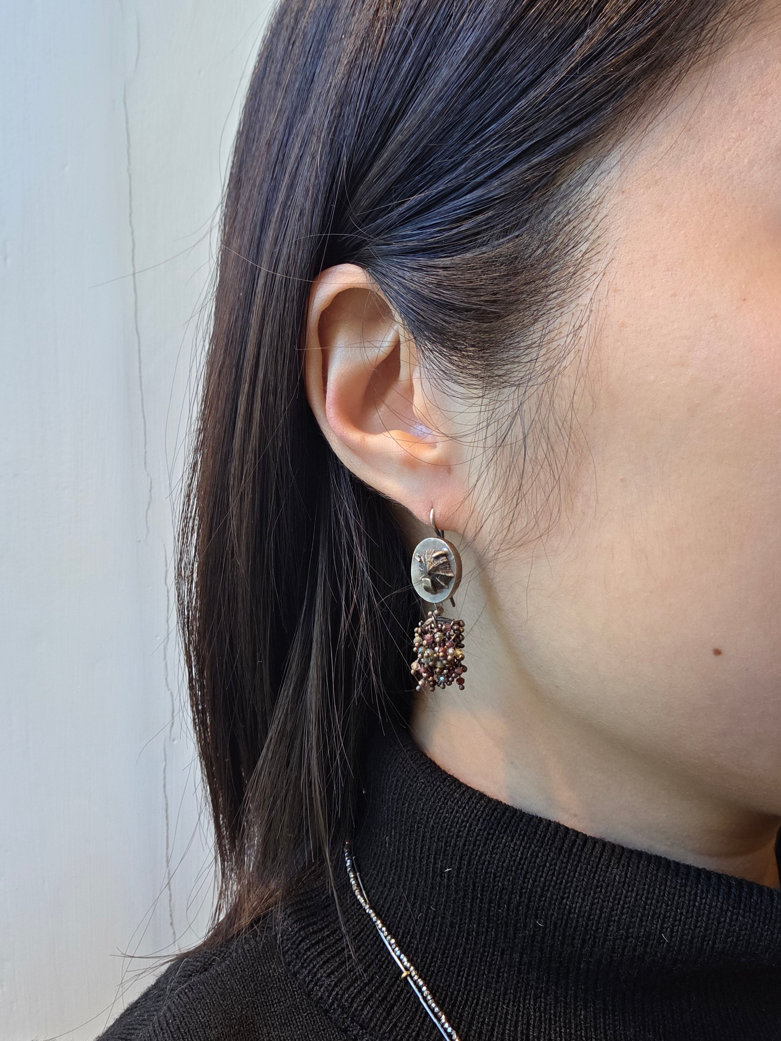 Shell and Garnet Bead Earrings in Oxidized Silvershell, garnet beads, oxidized silver