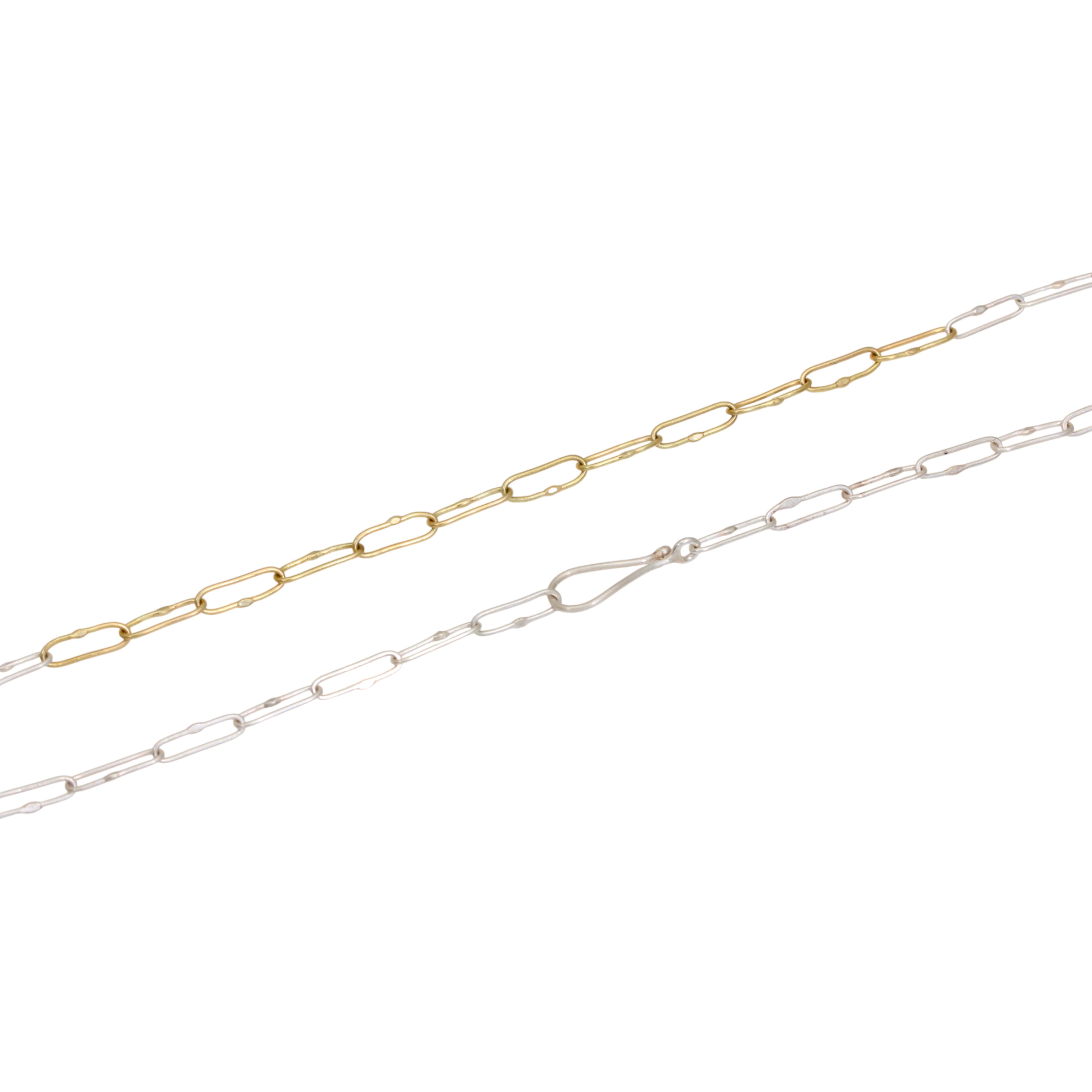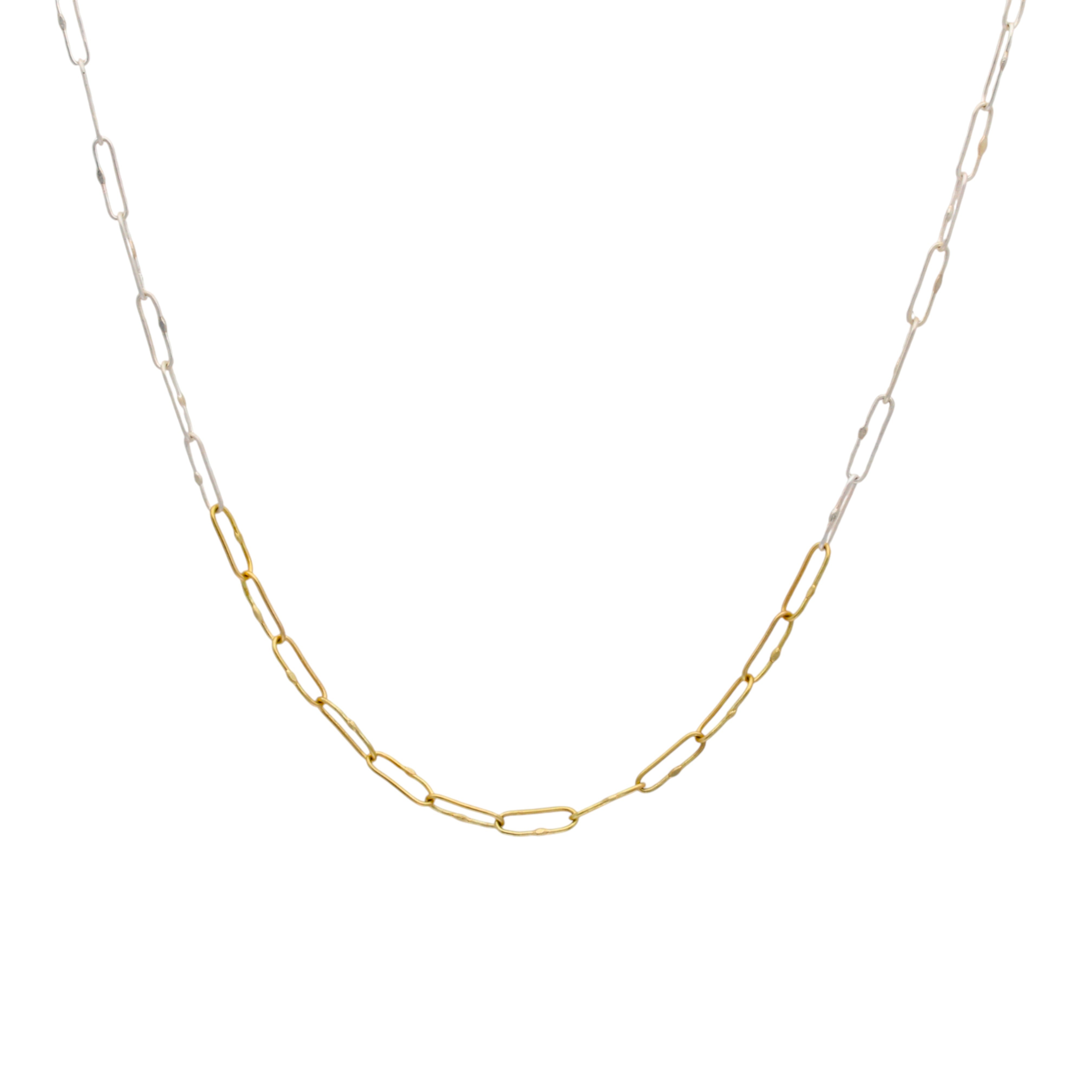 Short Links Chain in Brushed Silver with 12 Continuous 18k Gold Linkssilver, 18k yellow gold