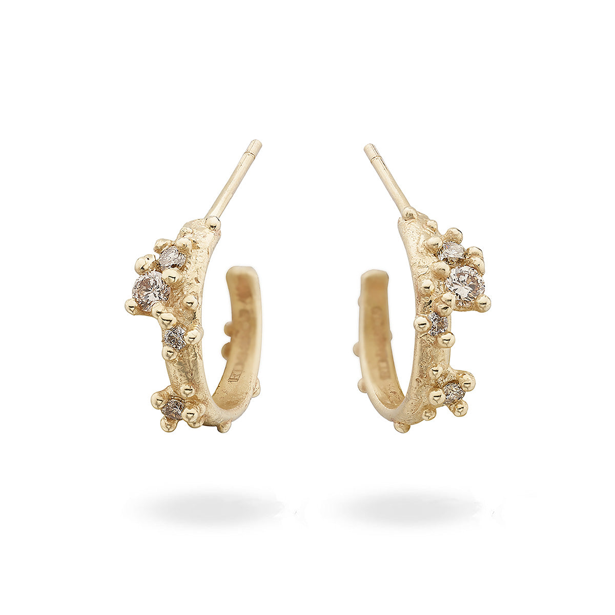 Small Champagne and White Diamond Encrusted Hoops in 14k Yellow Gold14ct yellow gold, champagne diamonds (0.23ct), white diamonds (0.05ct total)