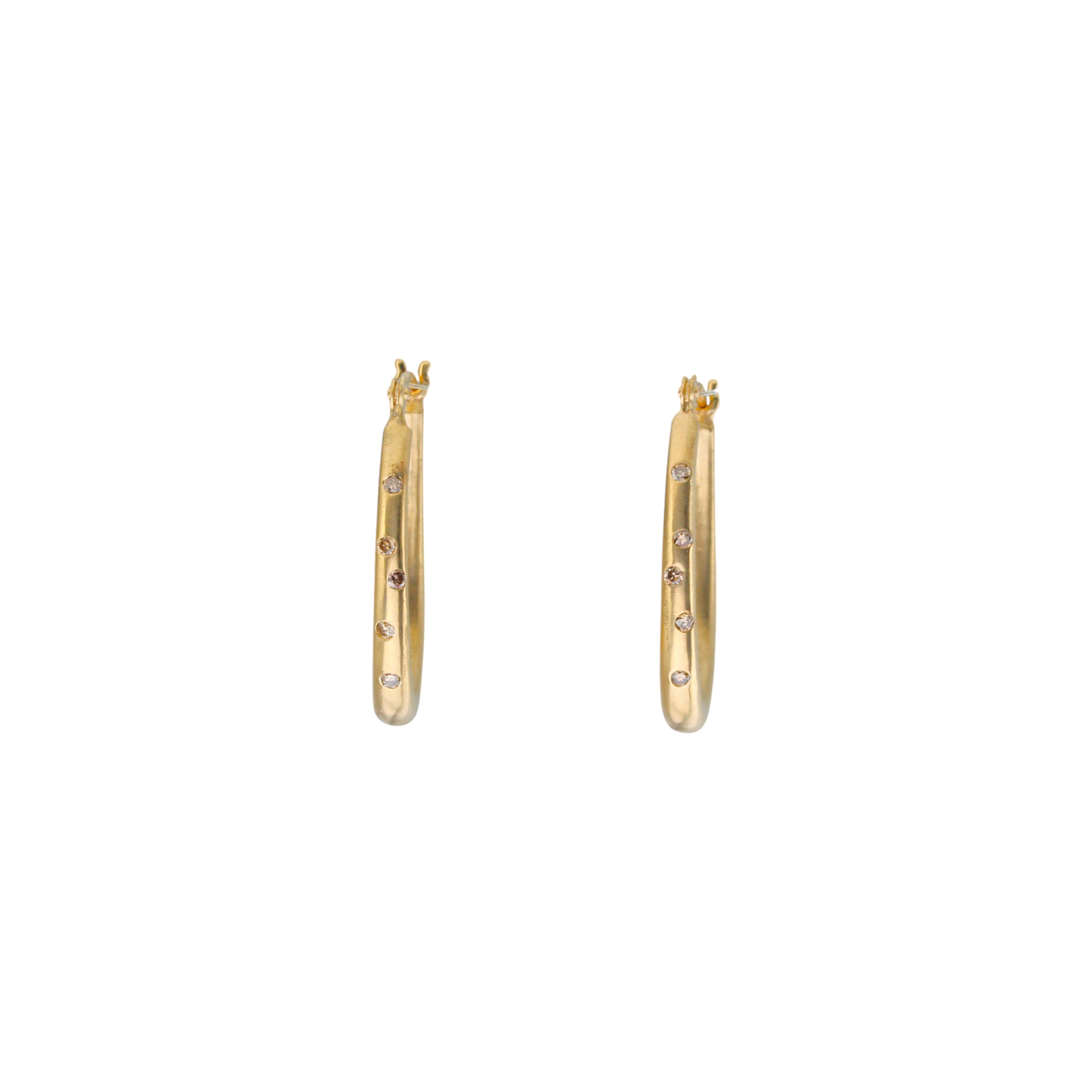 Small Katachi Oval Hoop Earrings with Locking Wire in 14k Yellow Gold with (10) Cognac Diamonds14k Yellow Gold, 1.2mm cognac diamonds5/8"