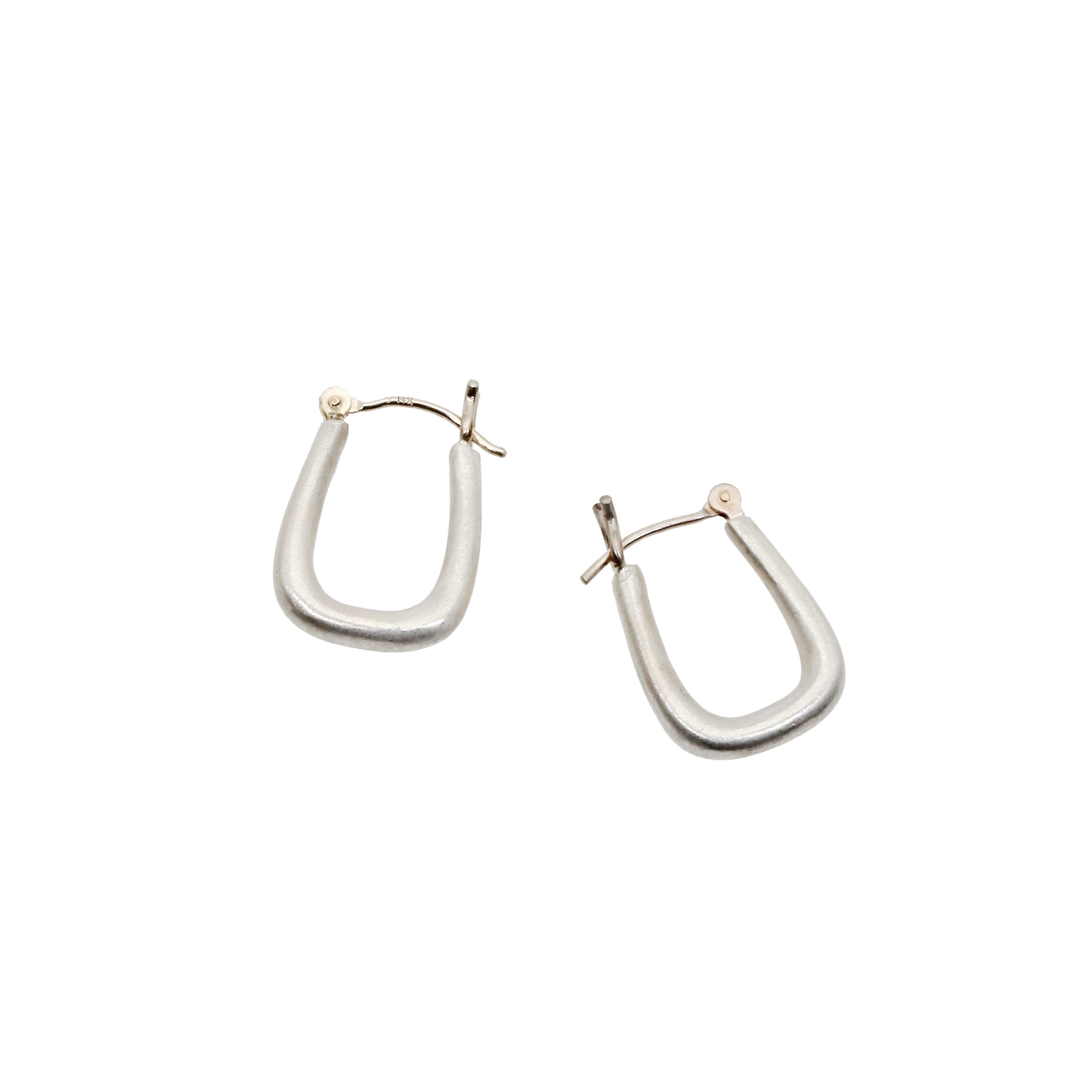 Small Squared Oval Hoop Earrings in Brushed Silver with 14k Gold Earwiressilver, 14k white gold