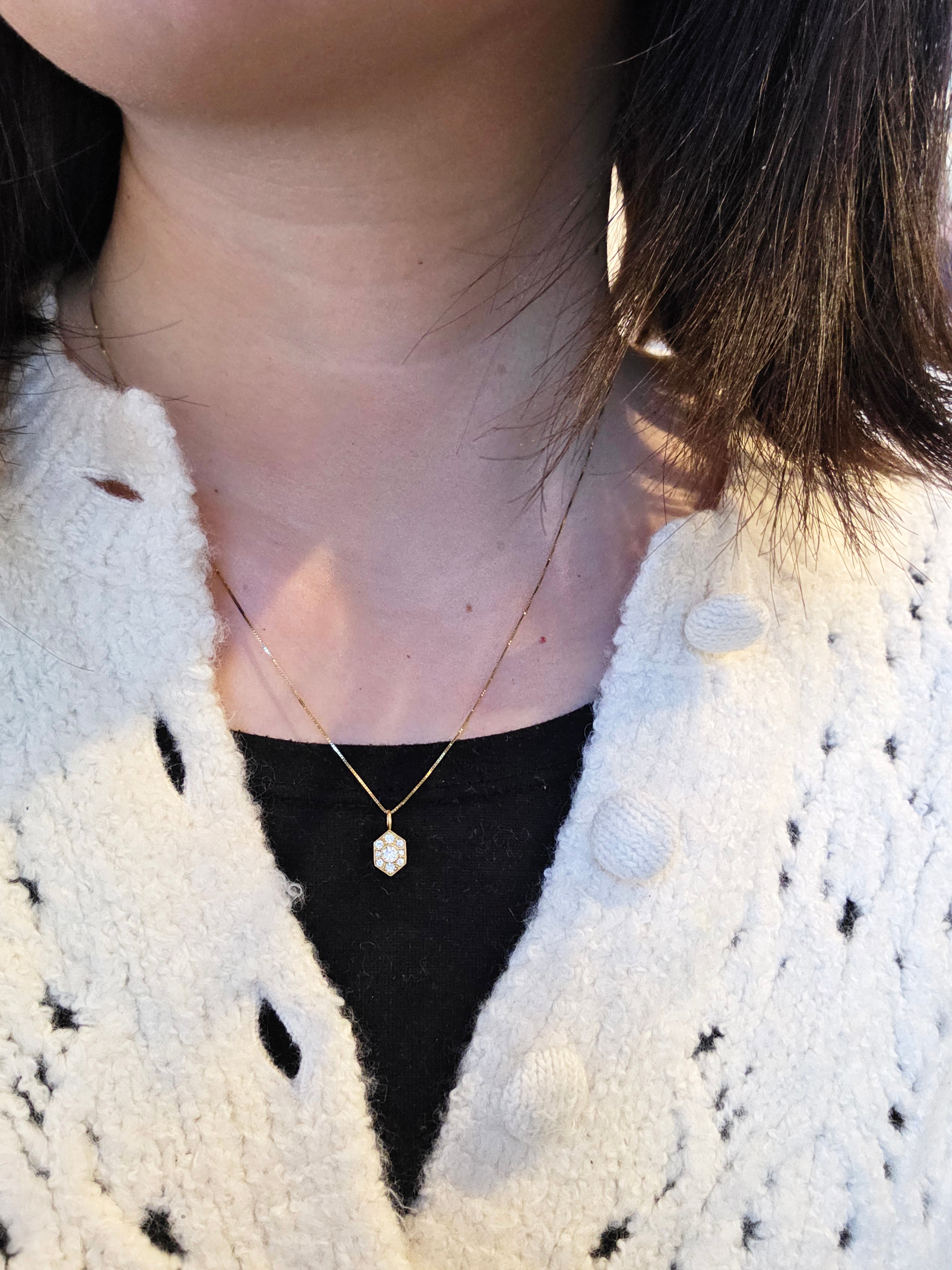 Small Wyatt Diamond Necklace in 18k Yellow Gold18k yellow gold, .25 carats of E color VVS clarity mined diamonds, 18k gold .5mm box chain