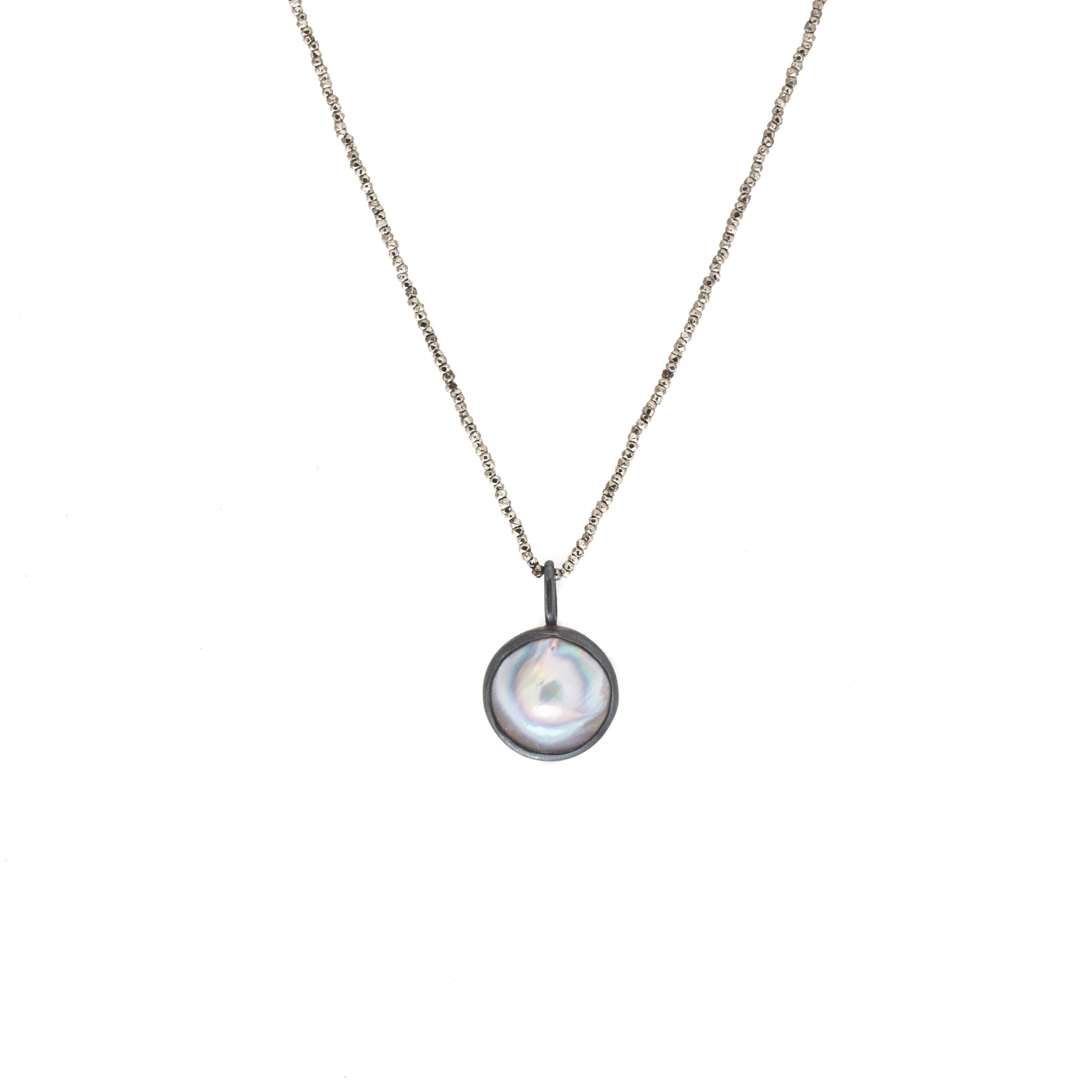 April HigashiSteel Cut Chain with Handmade Clasp in Oxidized Silver 18"steel, silk, oxidized silver18" long