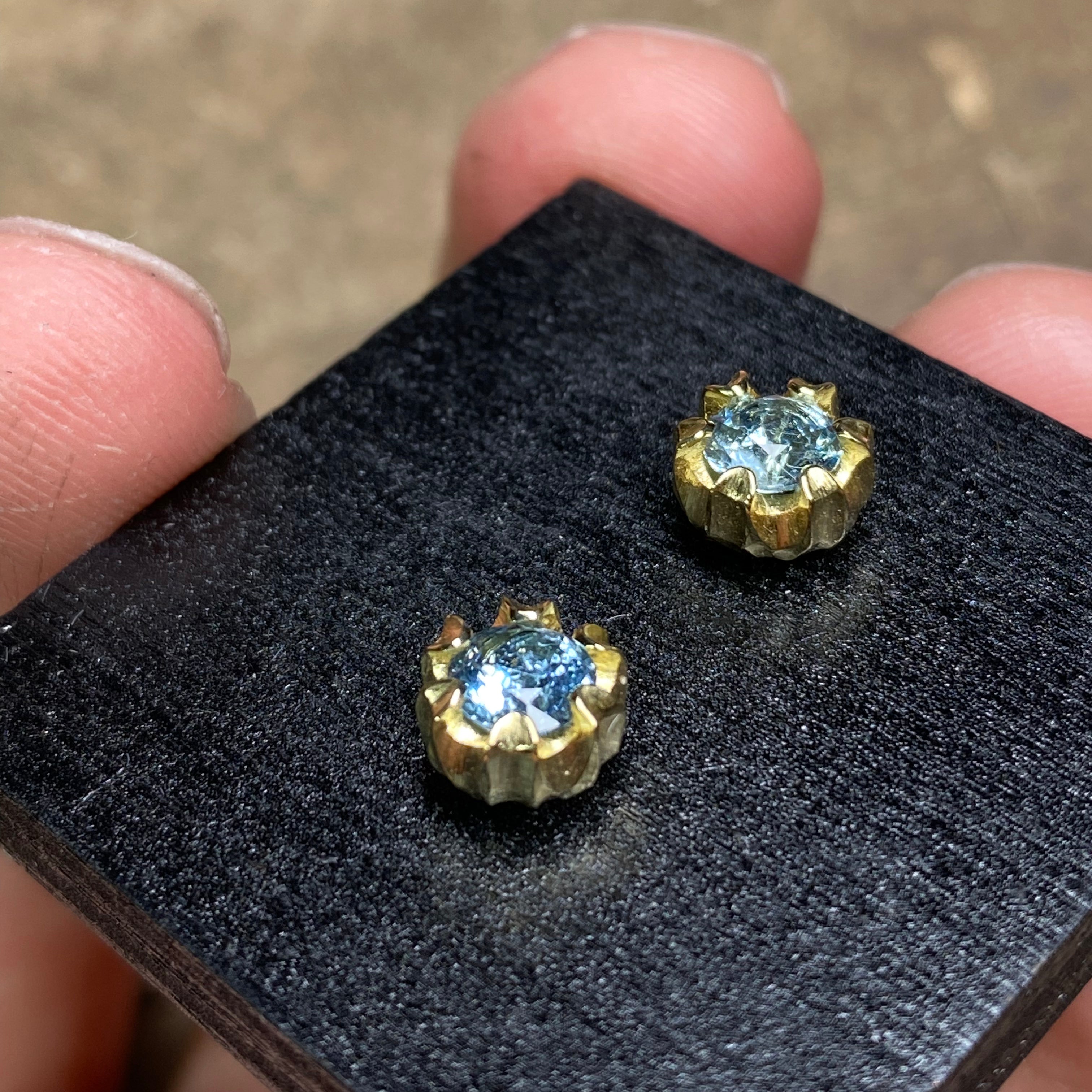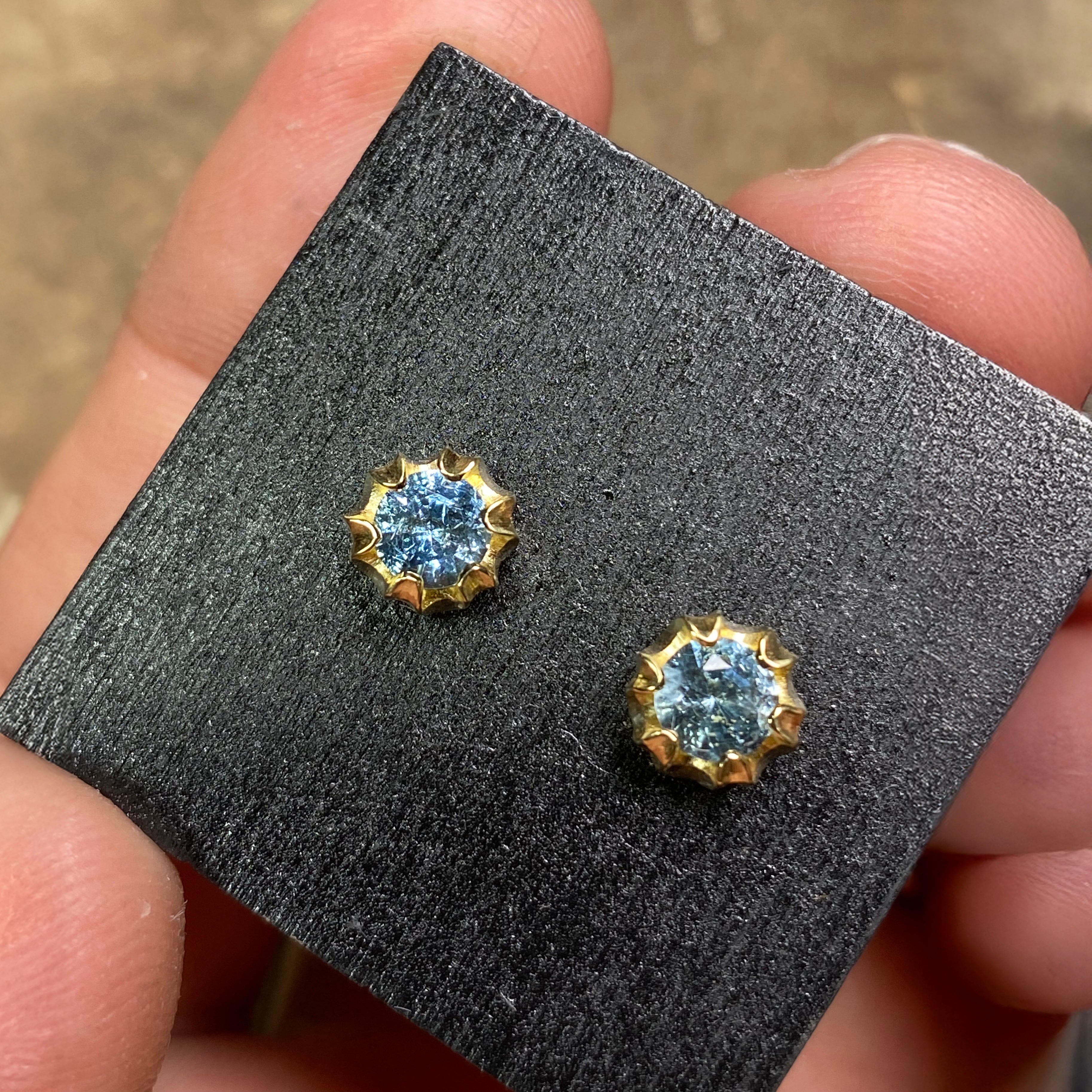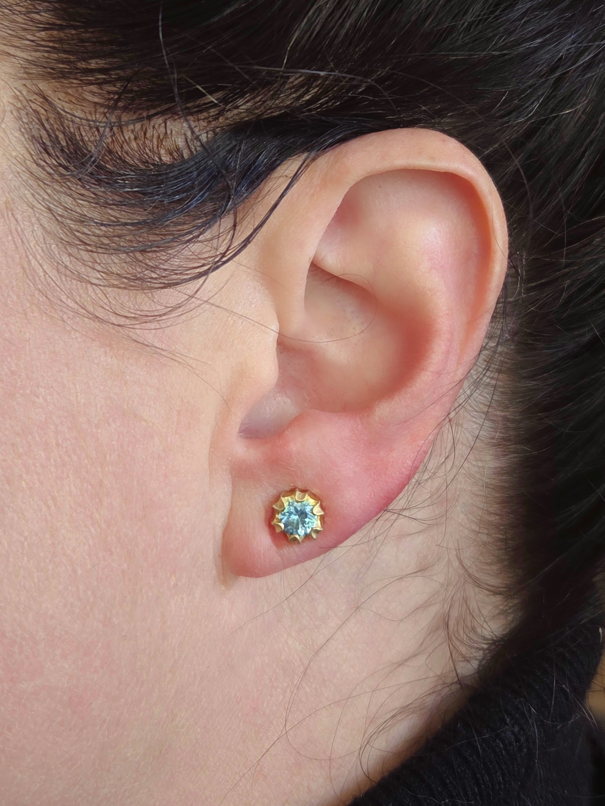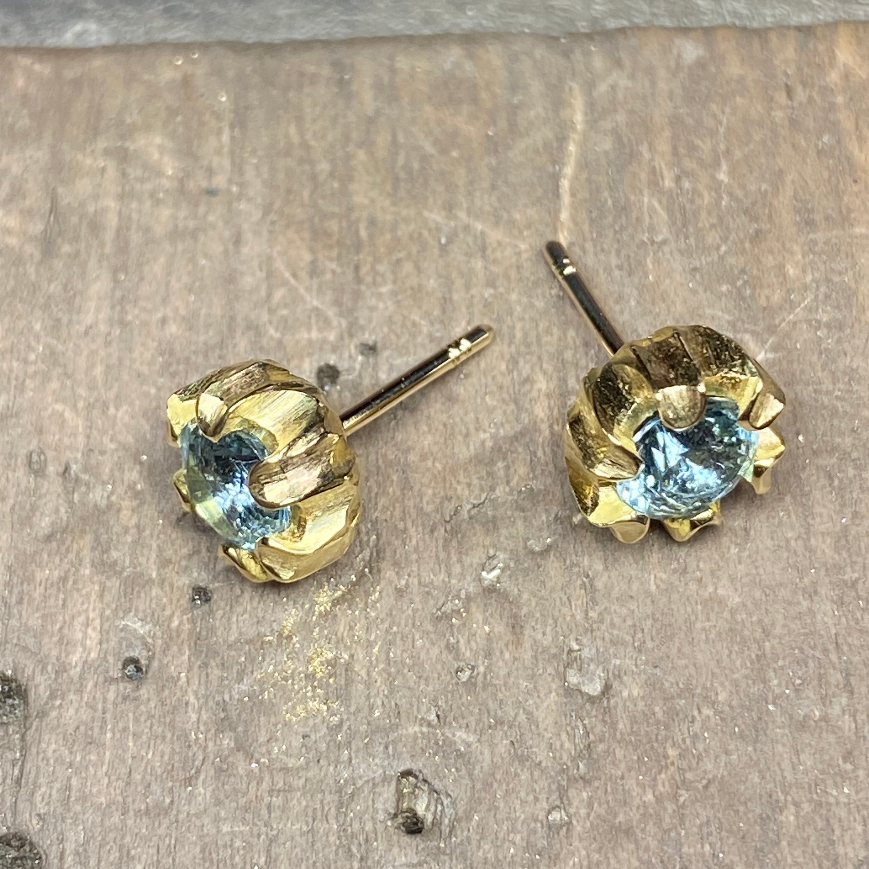 Blue Lotus Aquamarine Post Earrings in 18k Yellow Goldaquamarine, 18k yellow gold