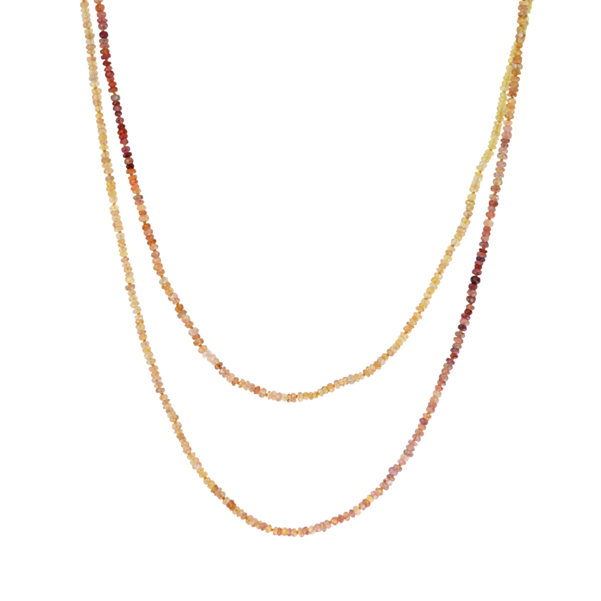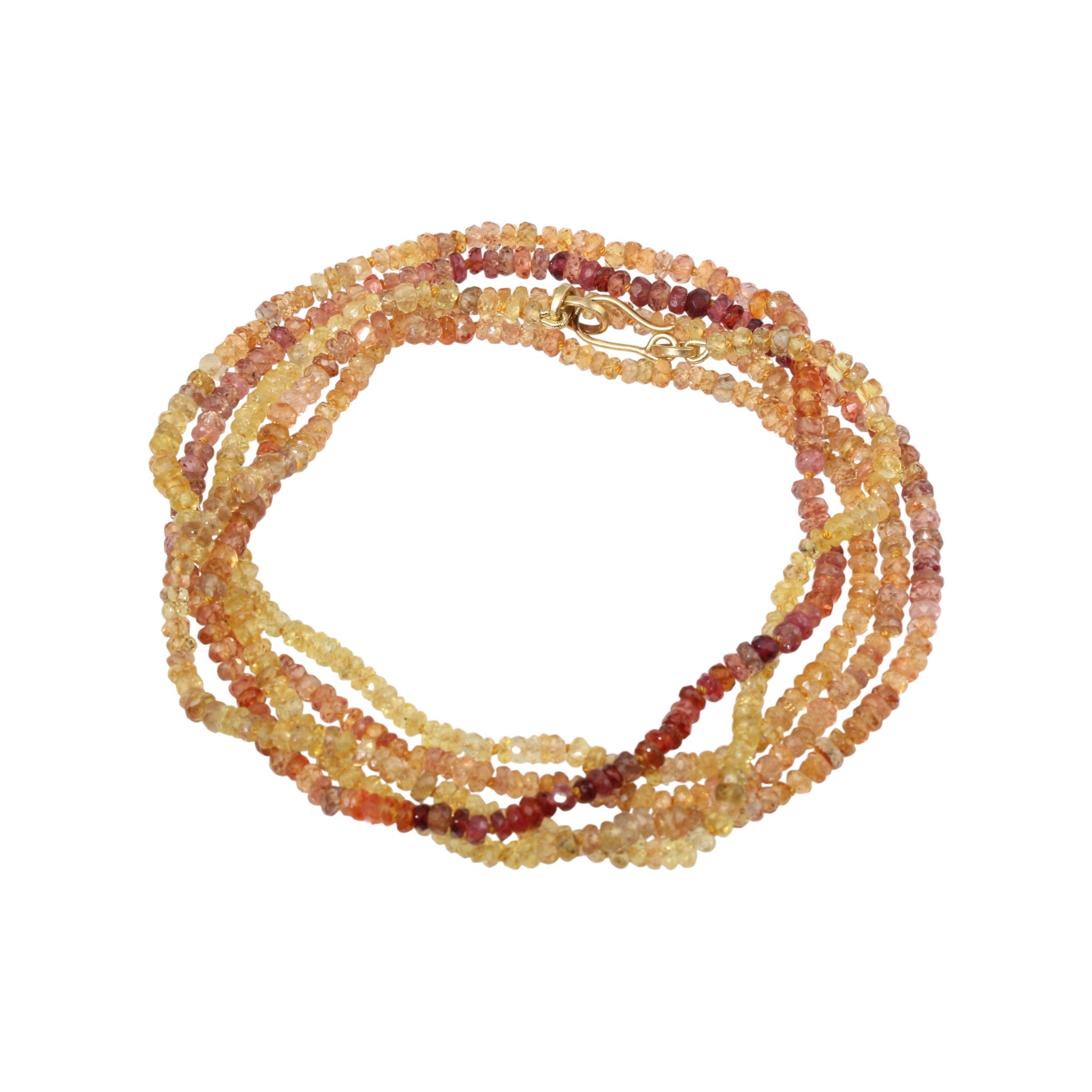 3-3.25mm faceted sapphire beads knotted with saffron colored nylon thread and finished with 18K gold clasp