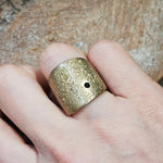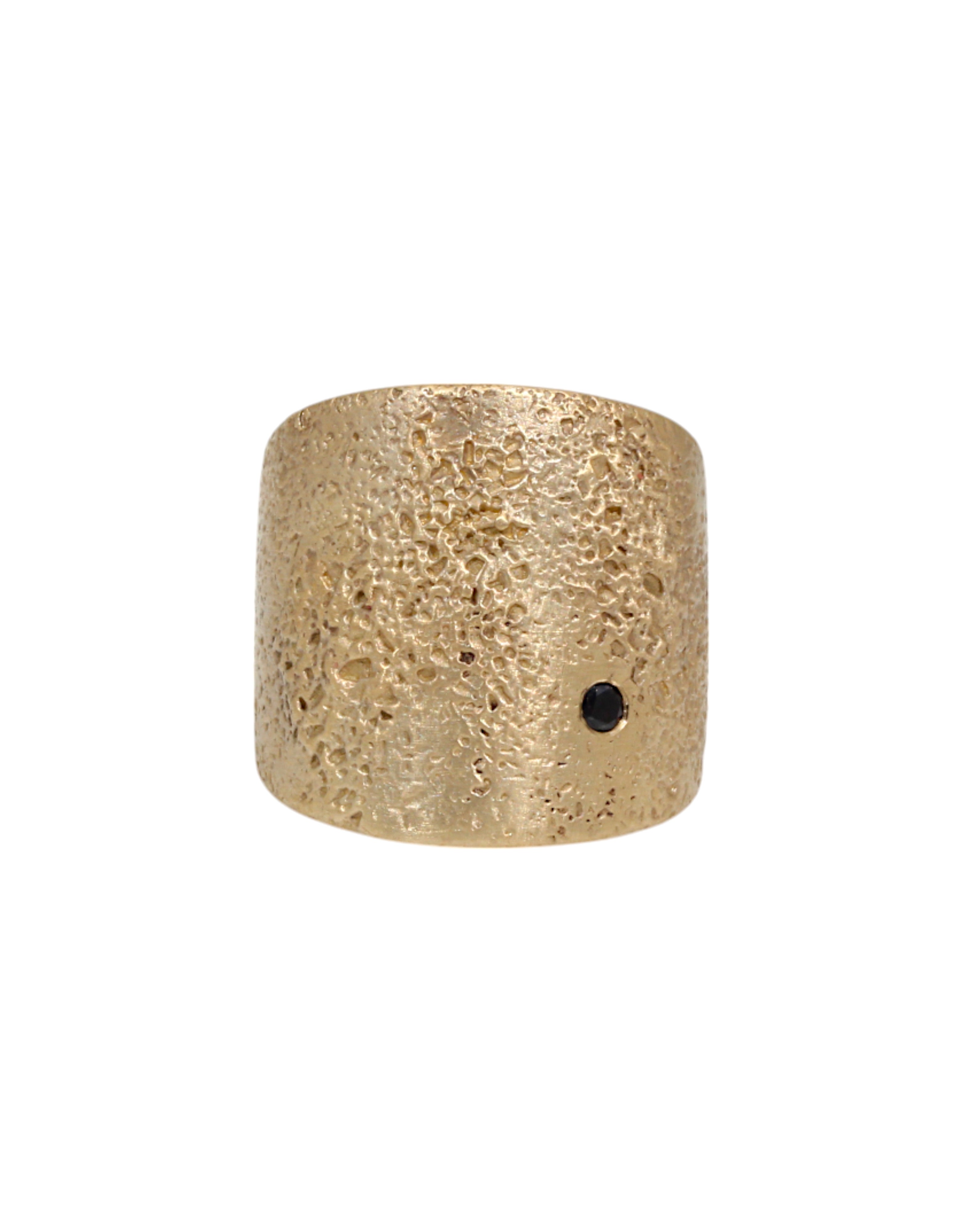 Textured Cuba Ring with Black Sapphire in Ancient Bronze