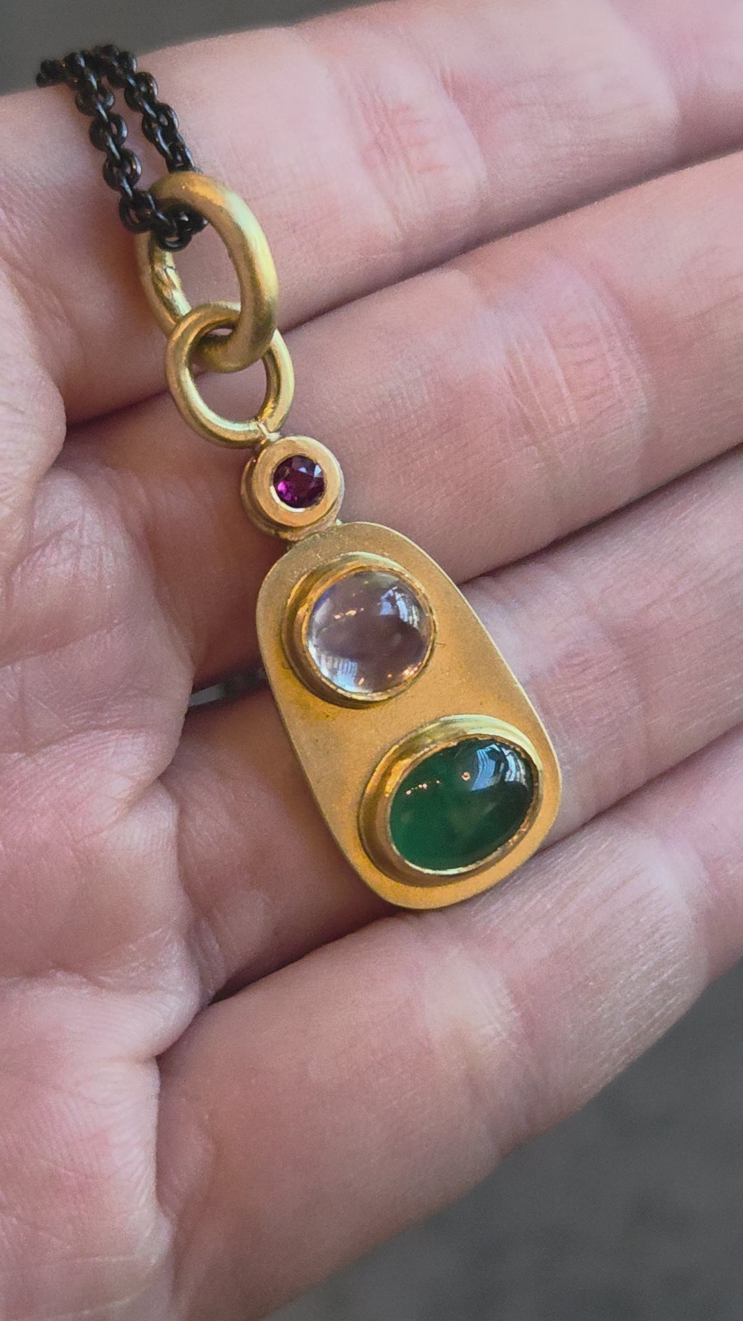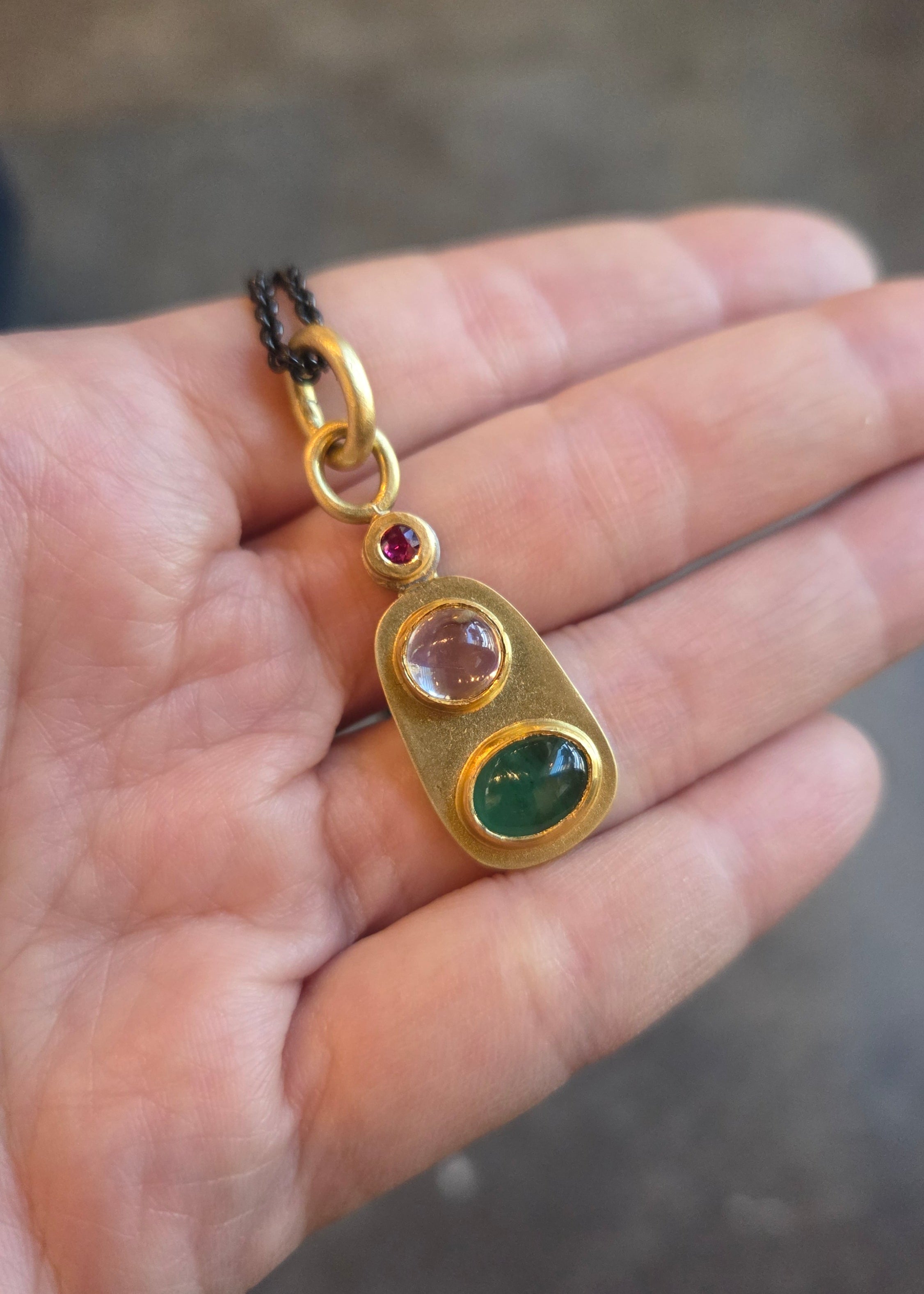 Emerald Pendant with Moonstone and Rubyemerald, moonstone, ruby, 22k and 18k yellow gold, platinum