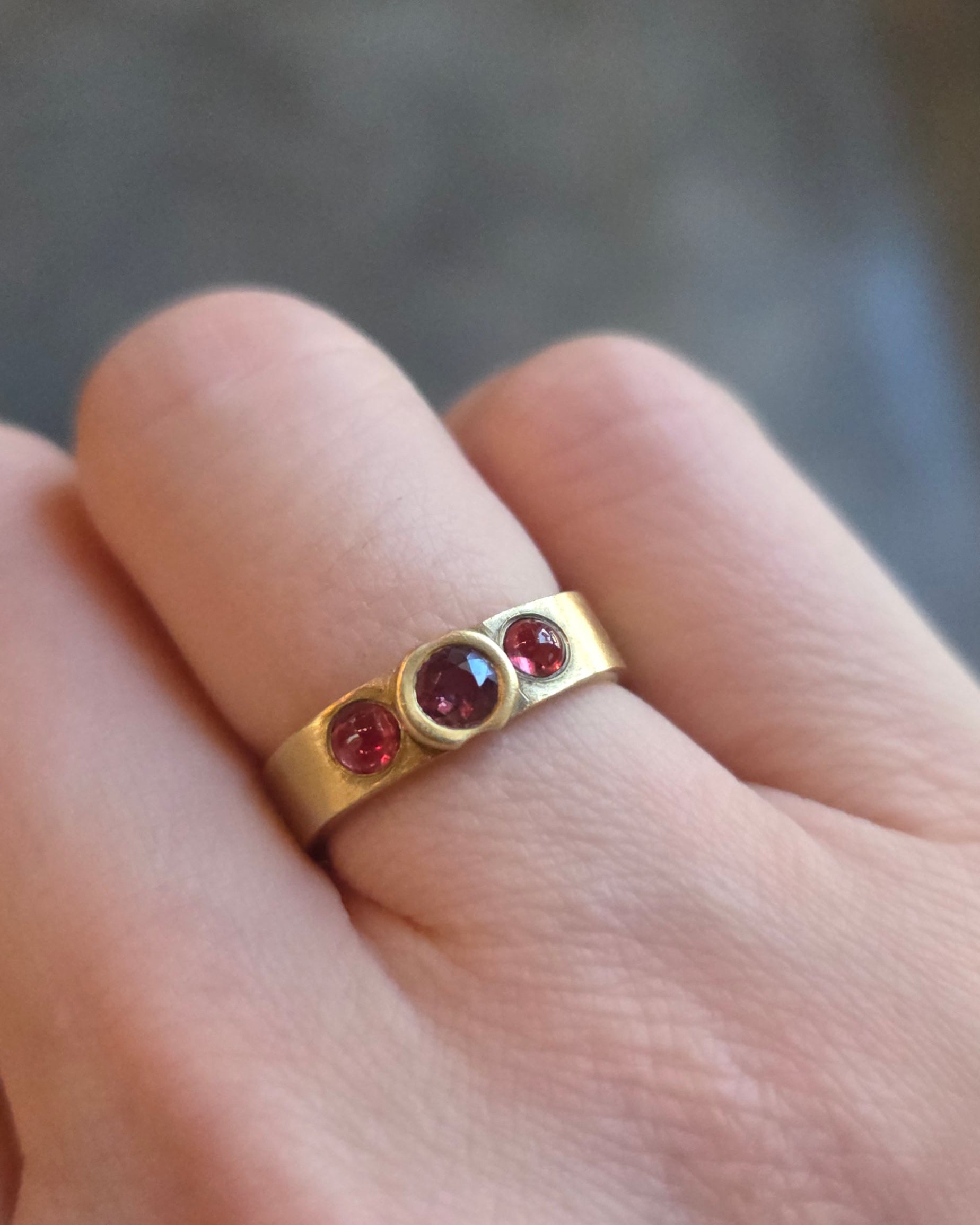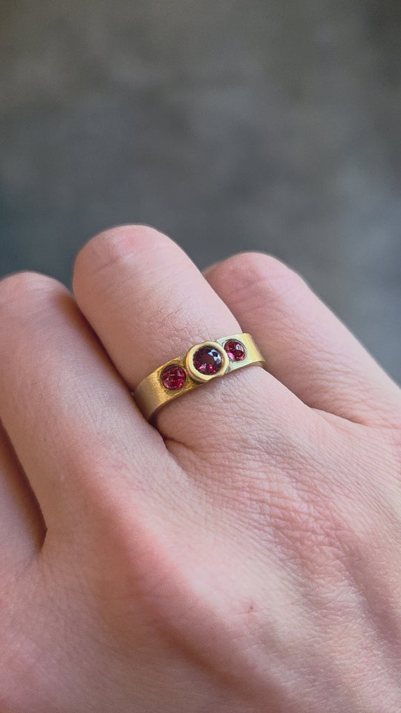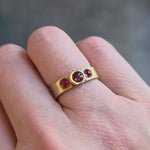 Two Sapphire and Garnet Band in 18k Yellow Goldsapphire cabochons, faceted garnet, 18k yellow gold