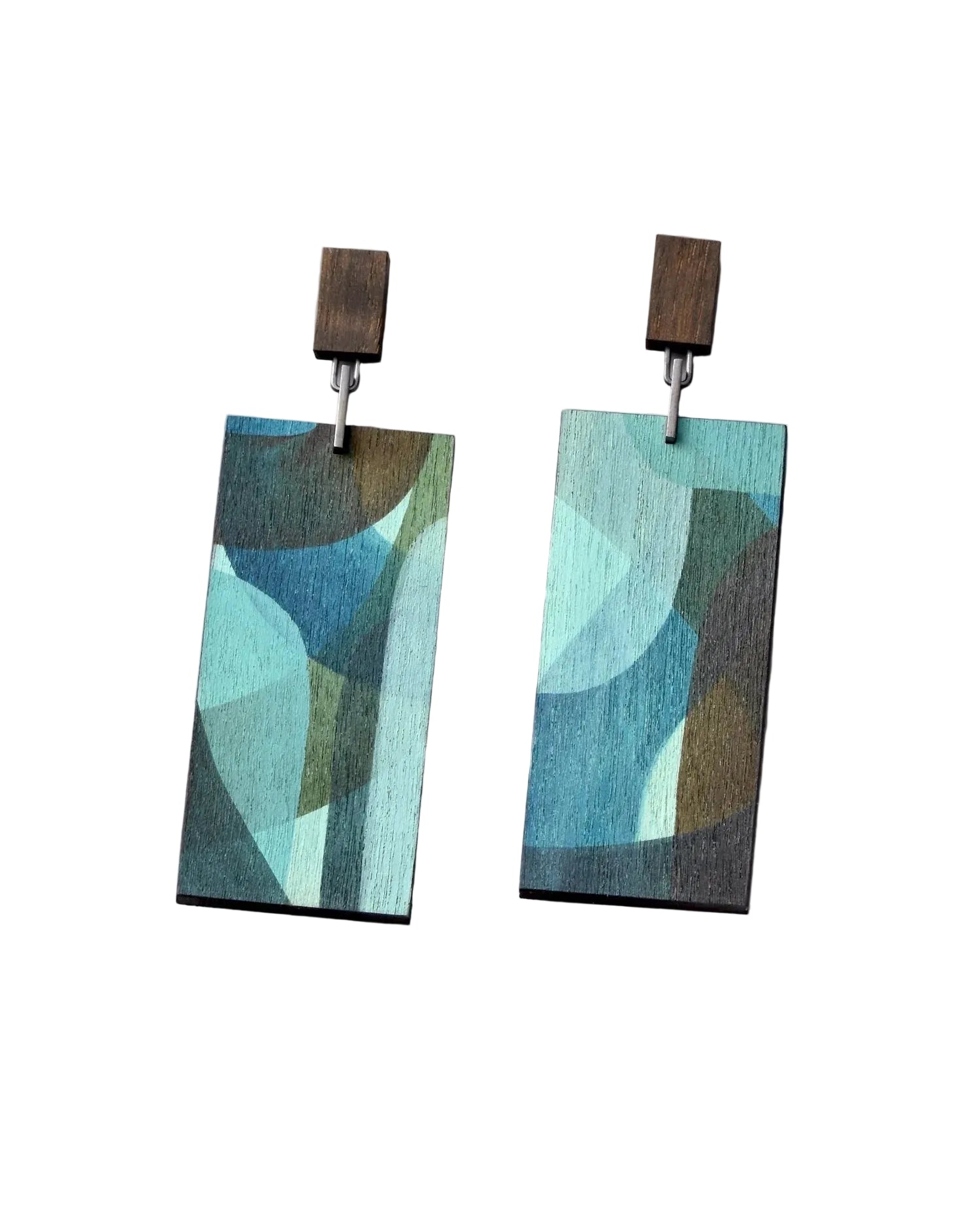 Vela EarringsWalnut, aspen veneer, ink, oxidized silver2 ⅝ x 1 x ¼ in. (6.5 x 2.4 x 0.6 cm)