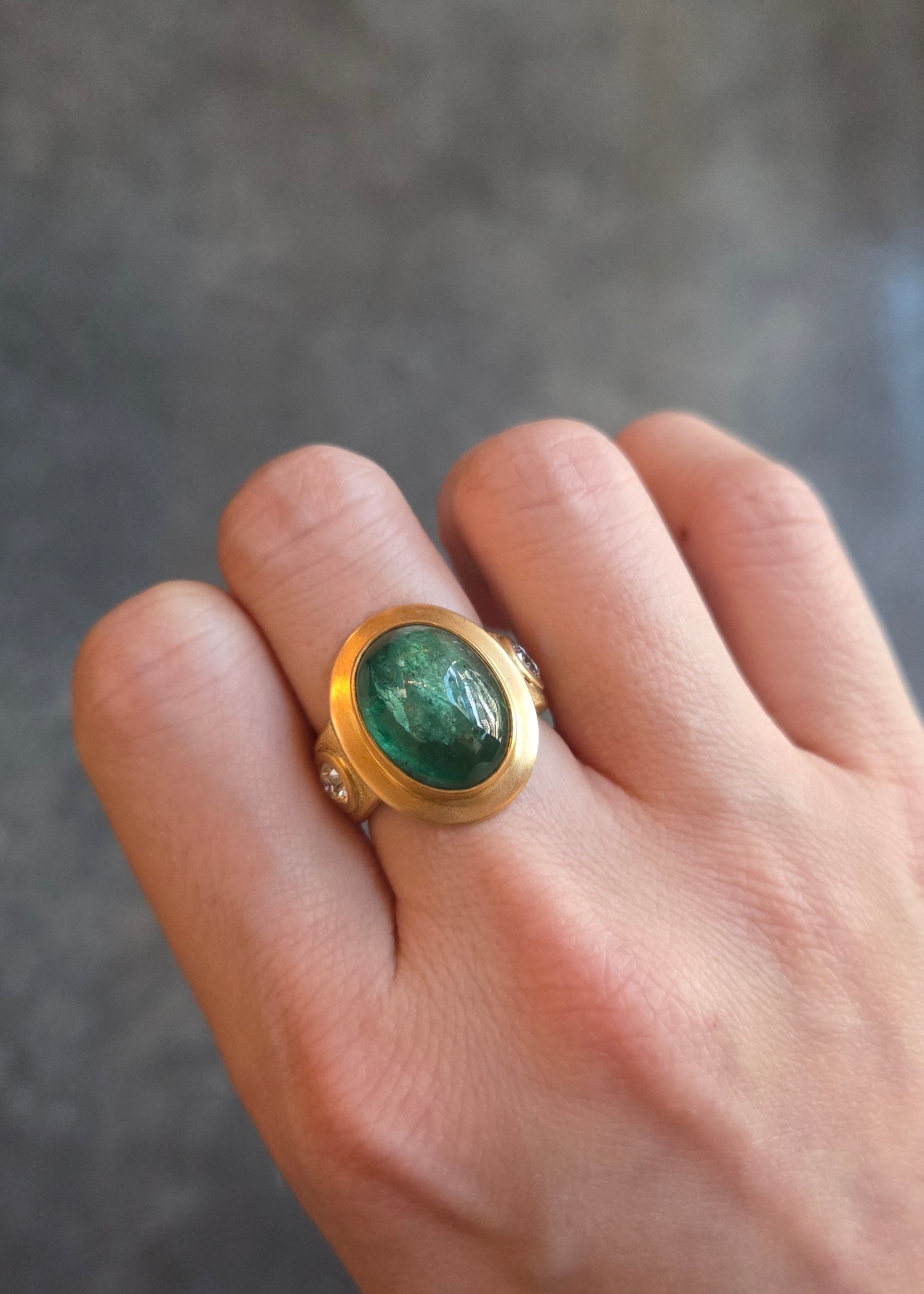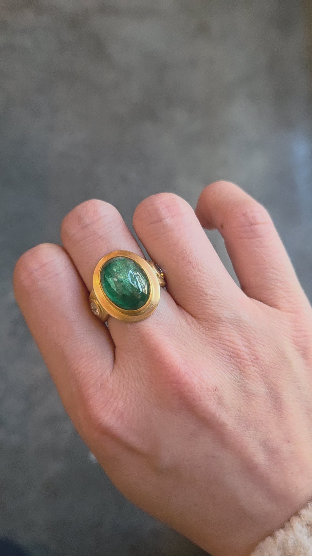 Zambia Emerald Ring in 22k and 18k Gold11.9 carat Zambian emerald, 1 carat natural Canadian diamond, 22k yellow gold, 18k yellow gold